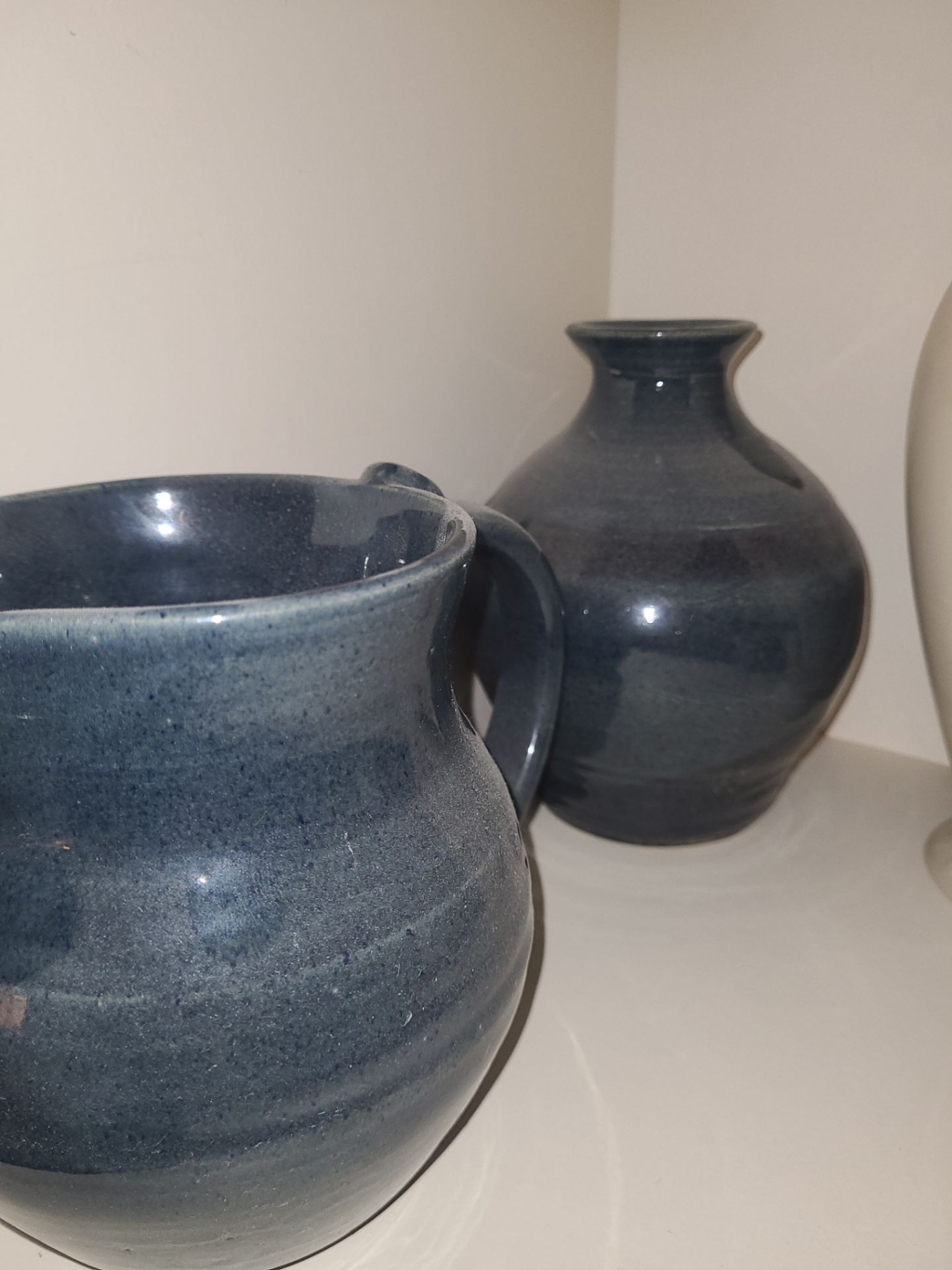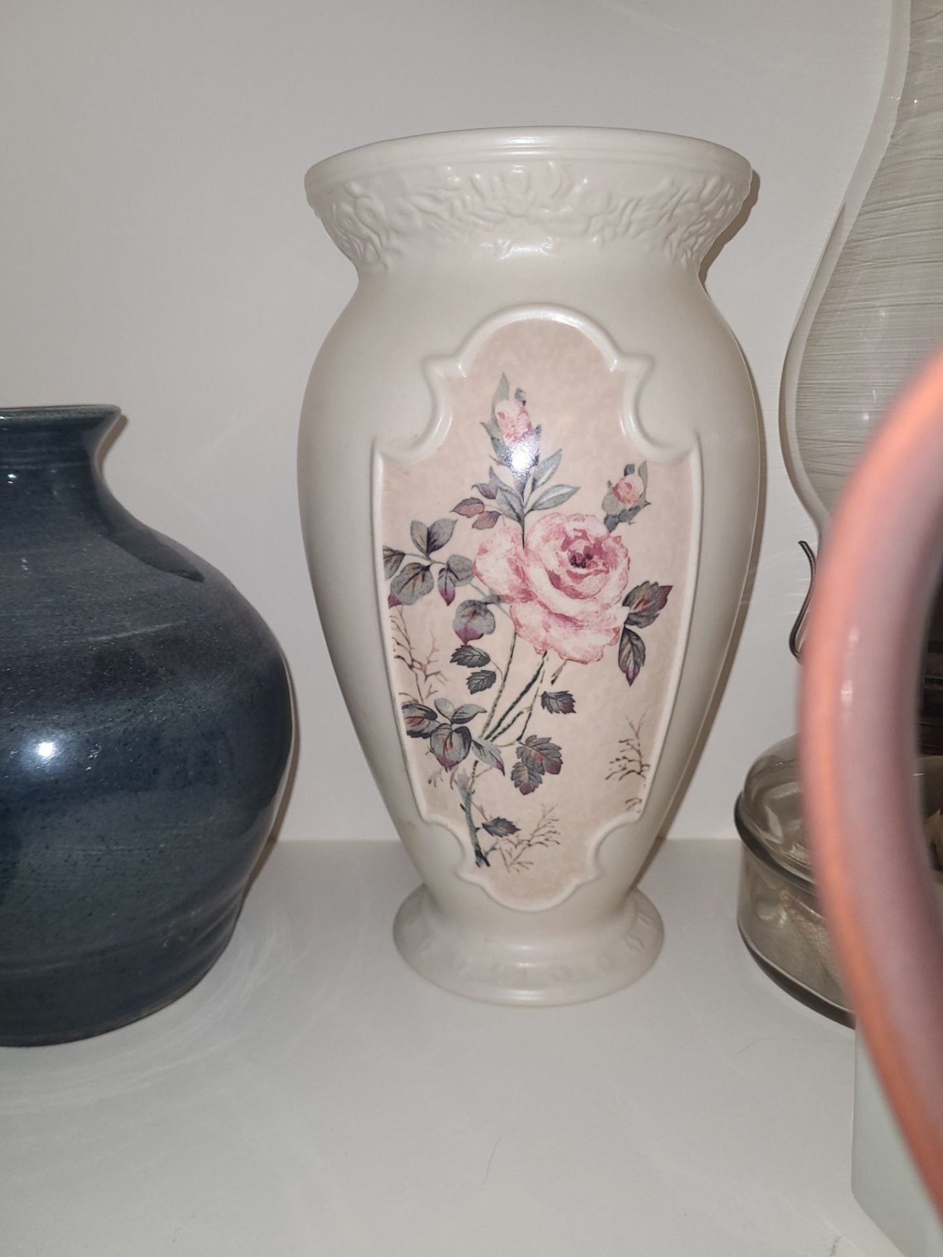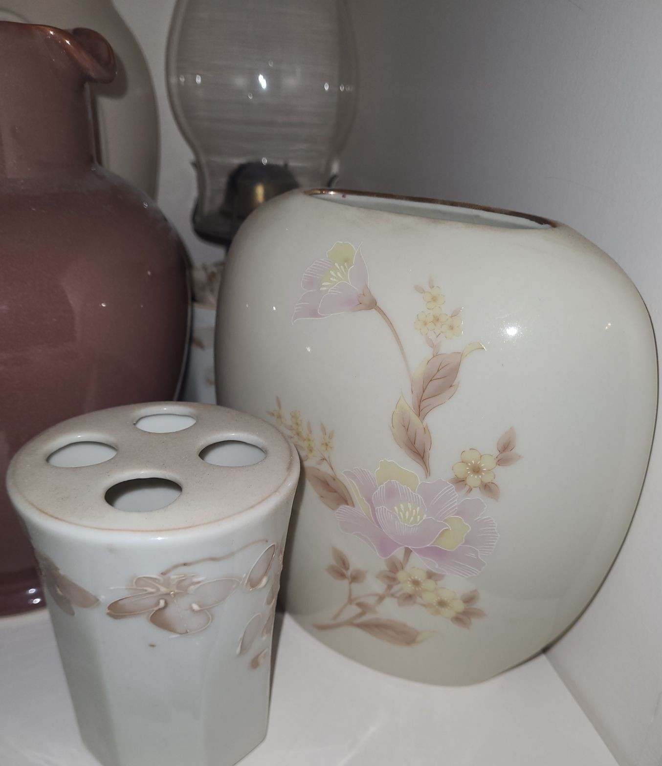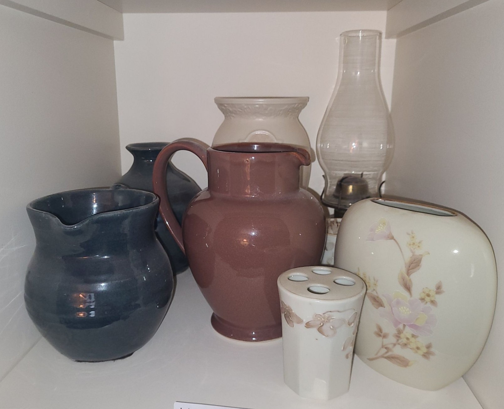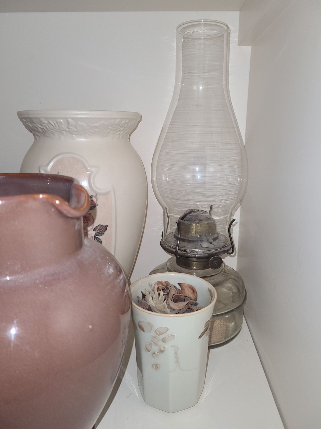 Lot 12 Asst Vases, Pitchers, Oil Lamp 12 1/2 h