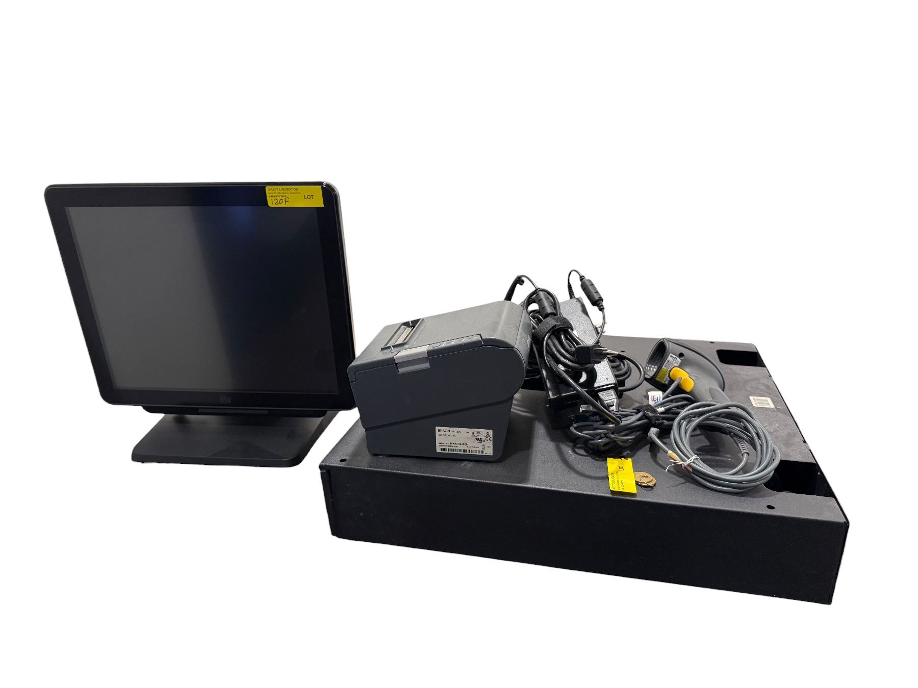 Lot 120F Elo Touch POS System Bundle - Epson Receipt Printer, Cash Drawer, Barcode Scanner & Key