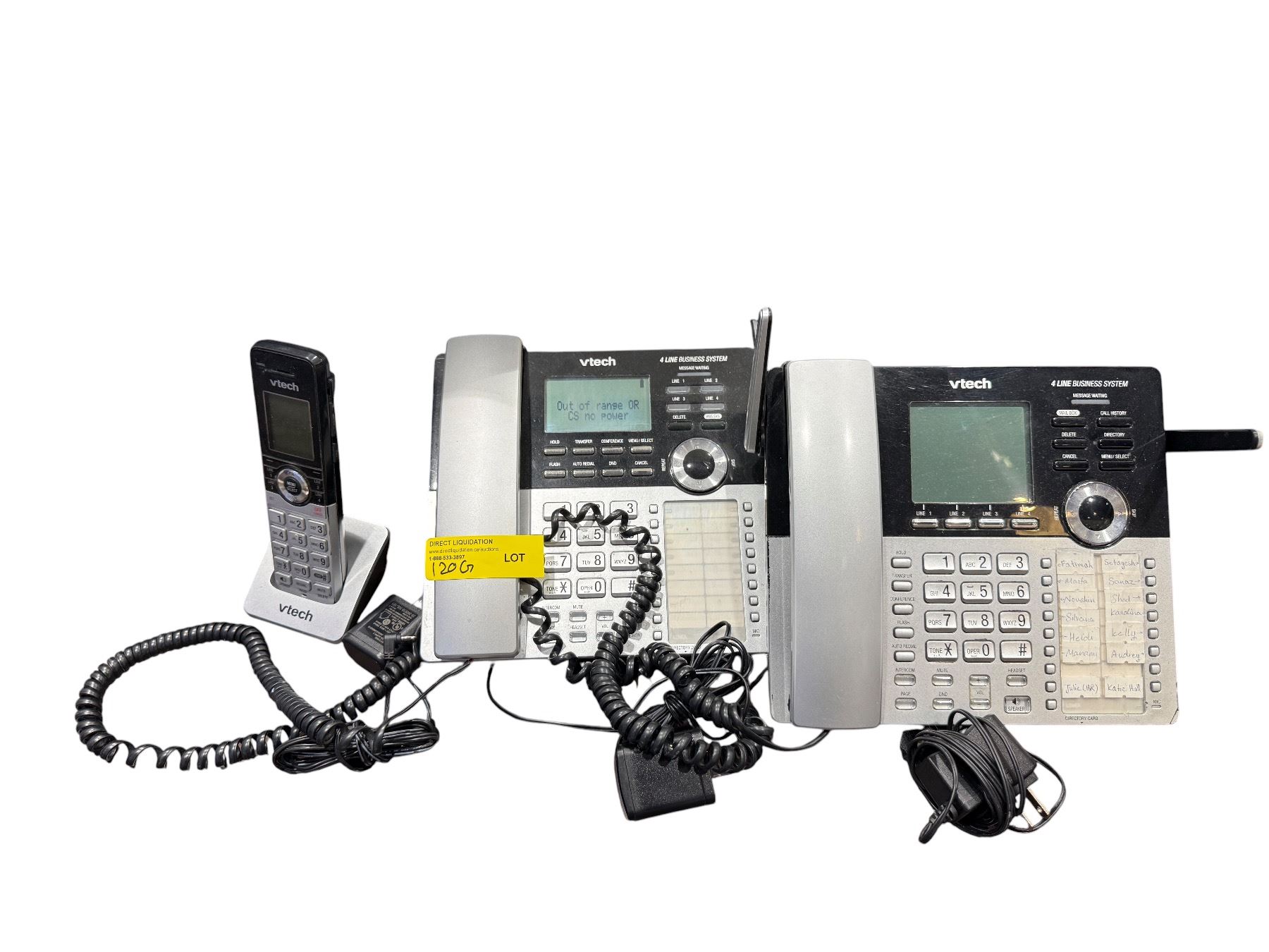 Lot 120G VTech CM18445 4-Line Small Business Phone System - Main Console, Desk Set & Cordless Handset