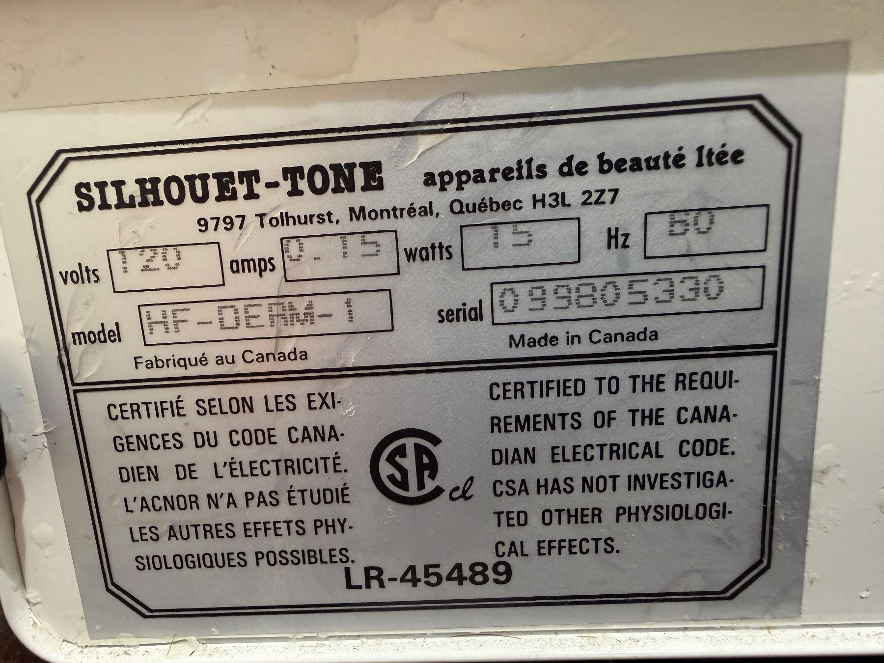 Lot 330I Silhouet-Tone HF-DERM-1 Professional High-Frequency Facial Module