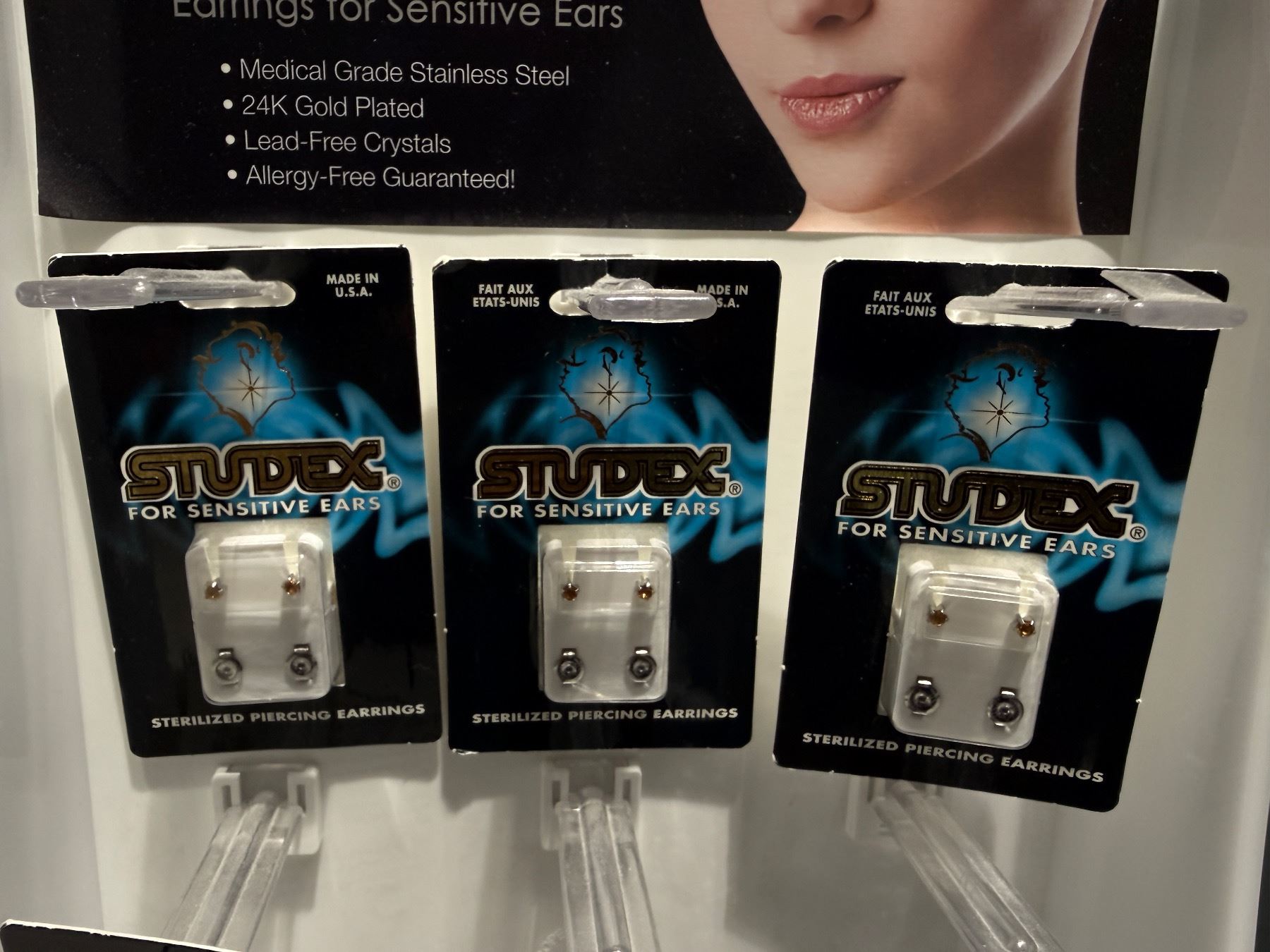 Studex Ear Piercing Display Stand & Inventory - Sterilized Earrings for Sensitive Ears
