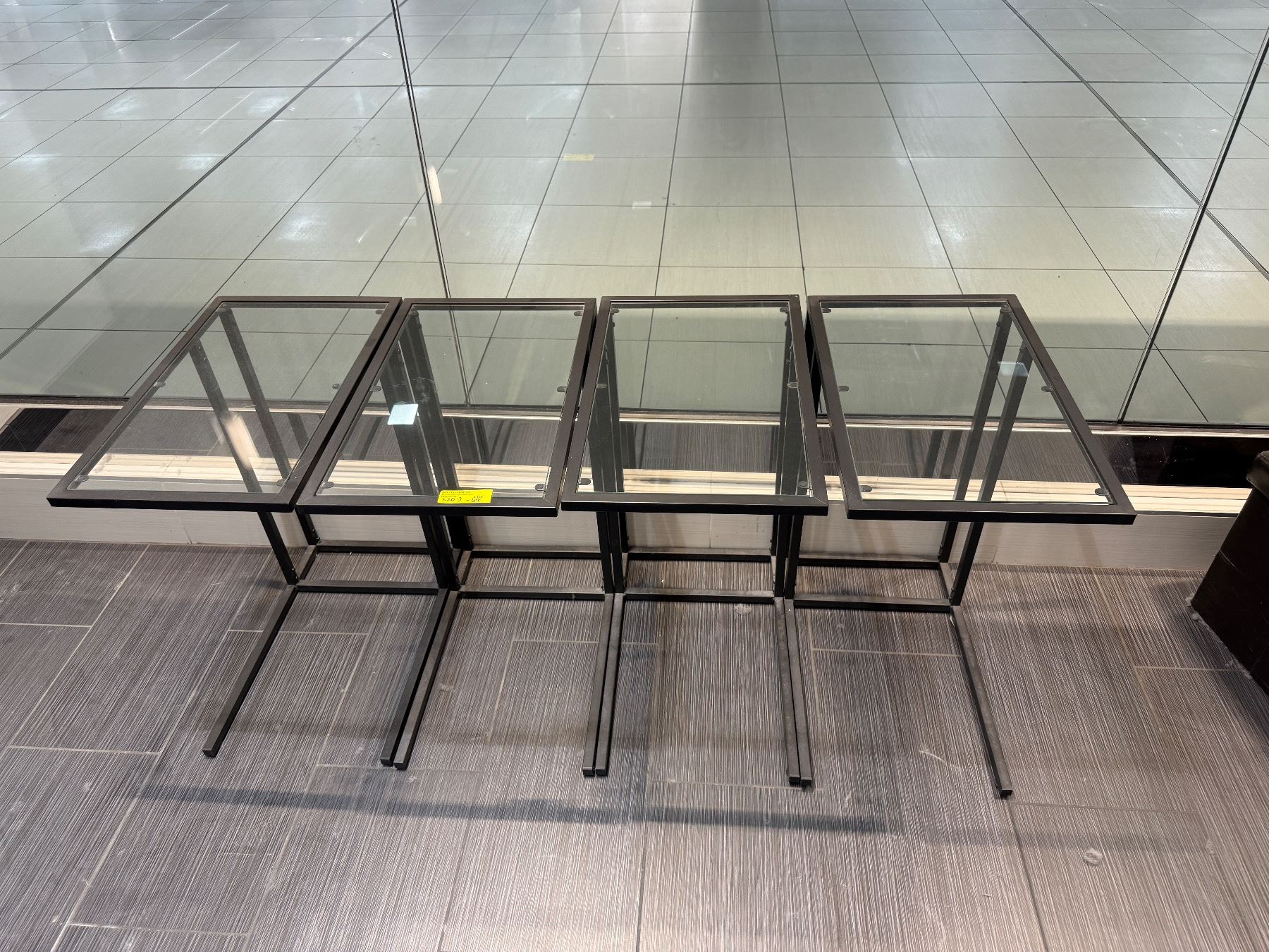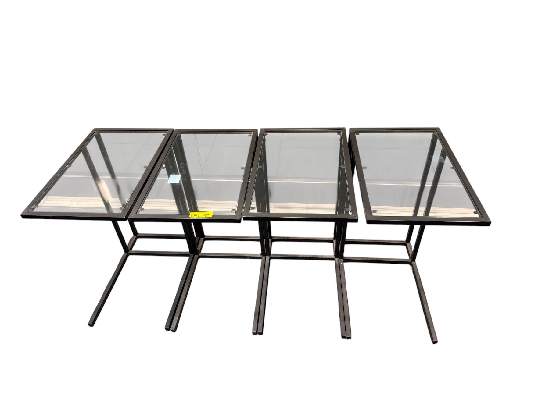 Lot 520B Set of 4 Black Metal C-Frame Side Tables - Smoked Glass & Granite Style Tops
