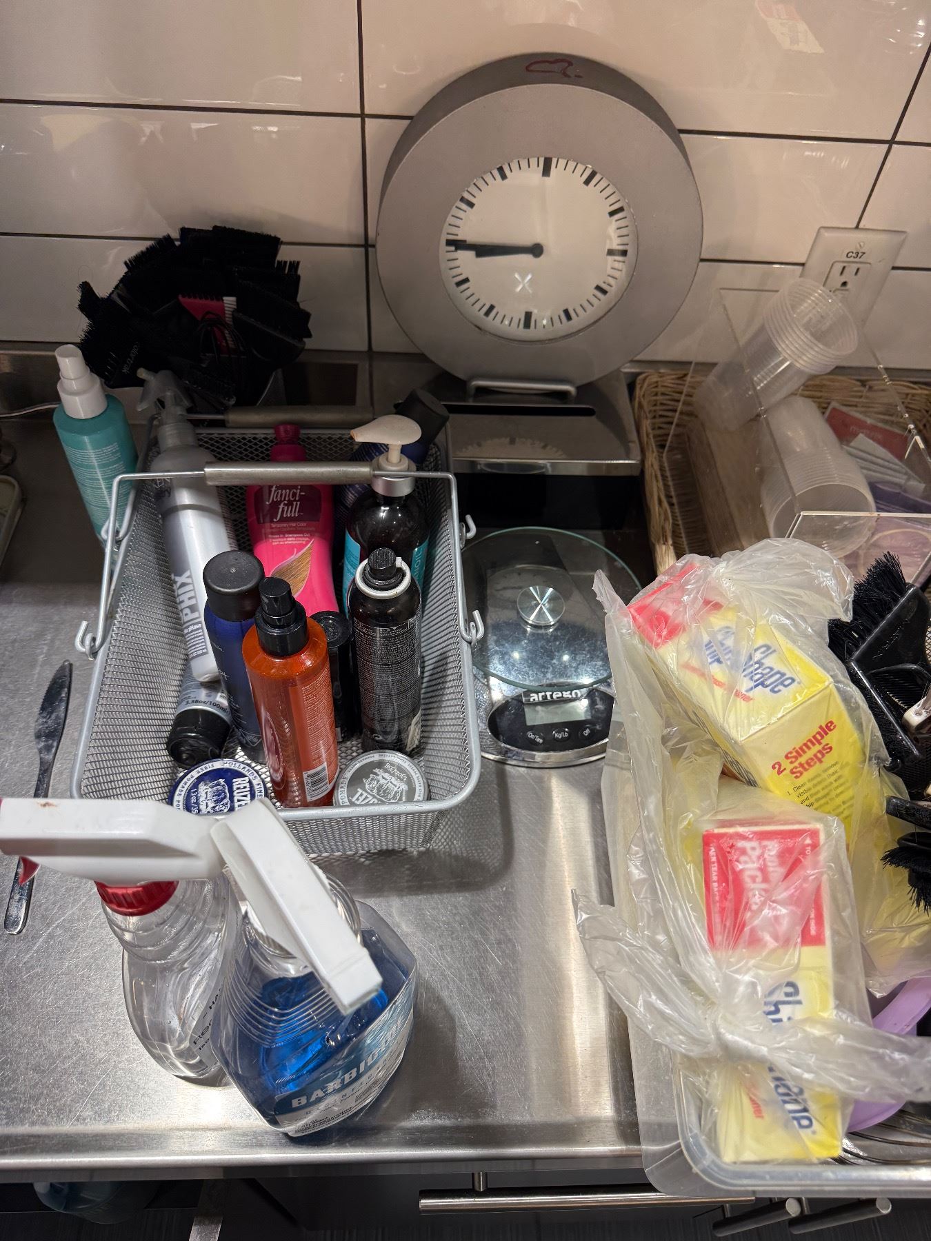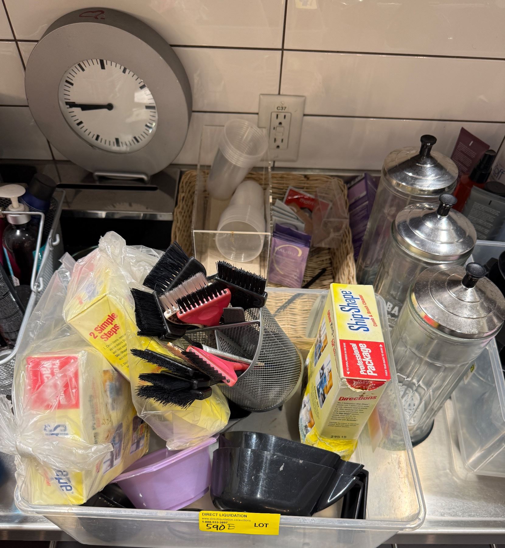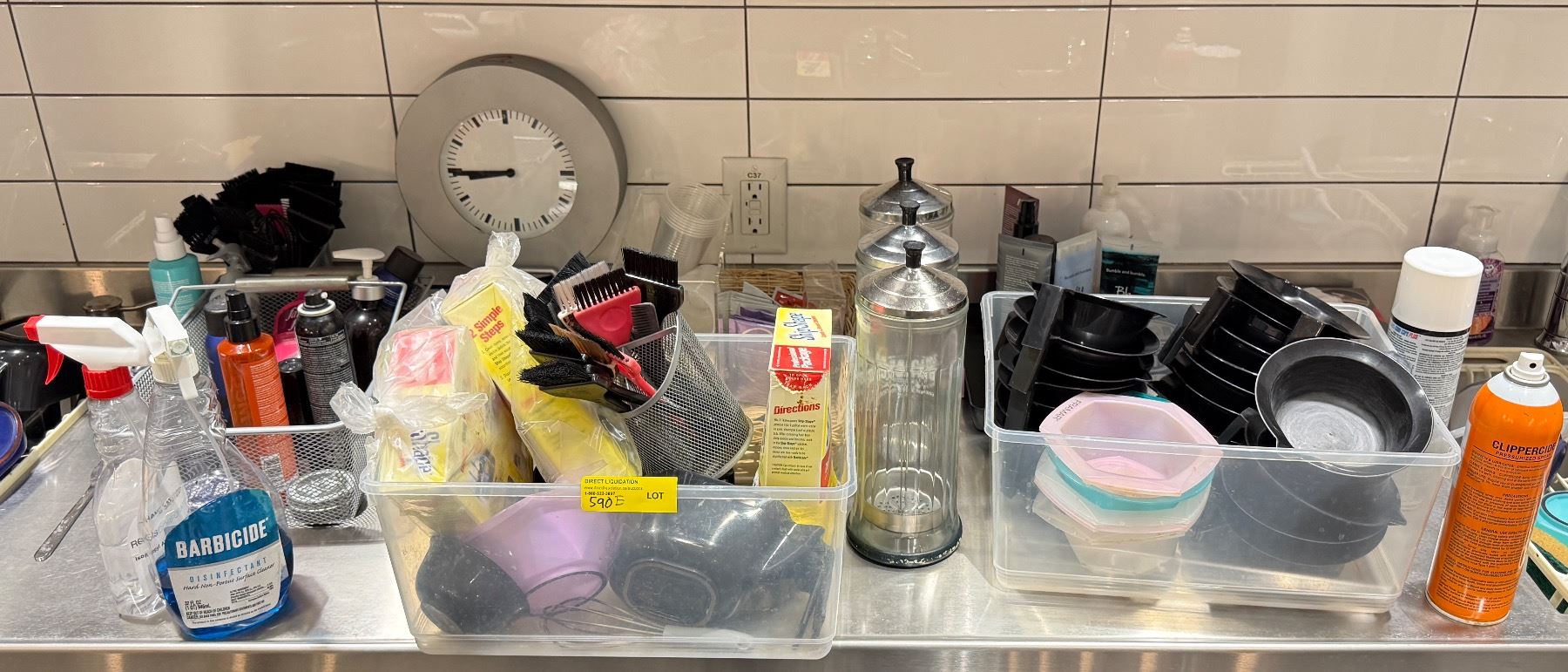 Lot 590E Assorted Salon Supplies - Hair Color Mixers, Brushes, Brush Cleaners