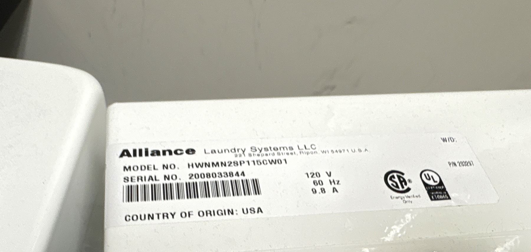 Huebsch Commercial Heavy-Duty Top Load Washer - Professional Laundry Machine (already disconnected) Model HWNMN2SP115CW01