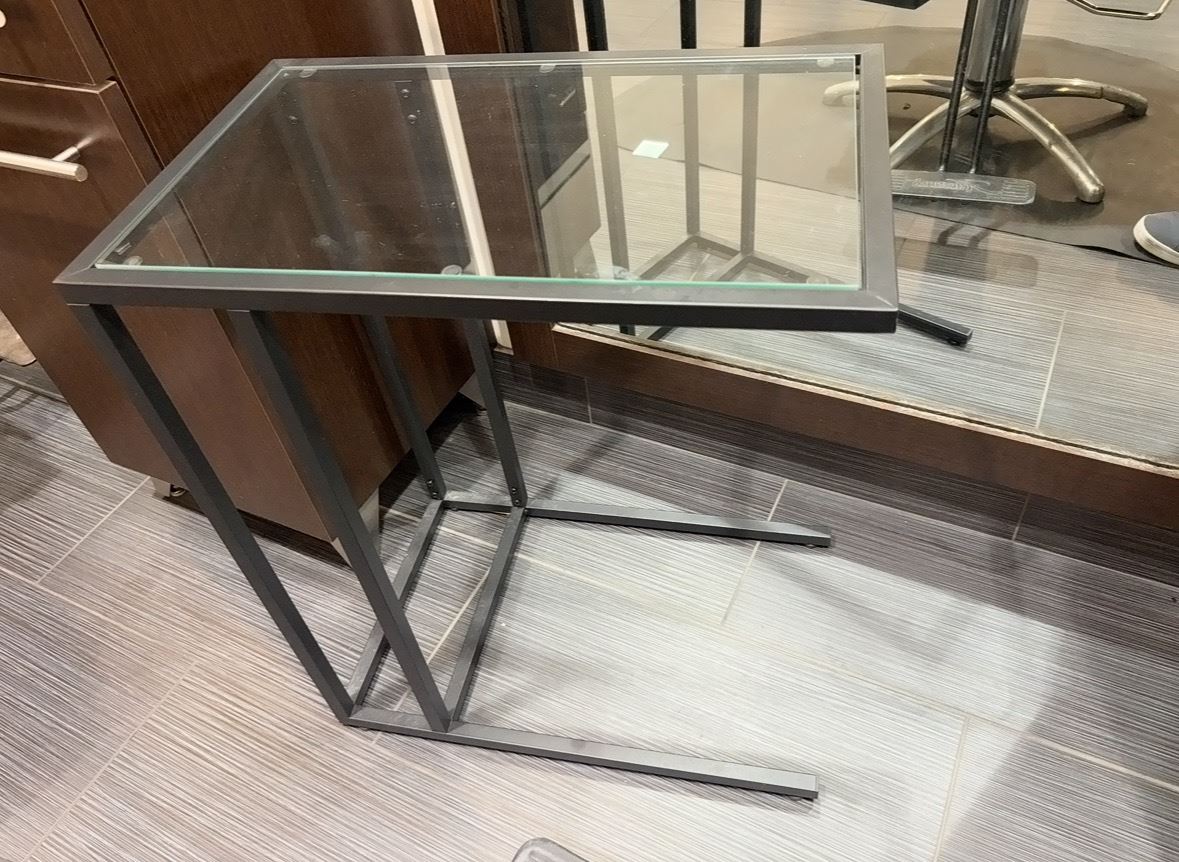 Lot 800I Set of 4 Black Metal C-Frame Side Tables - Smoked Glass & Granite Style Tops