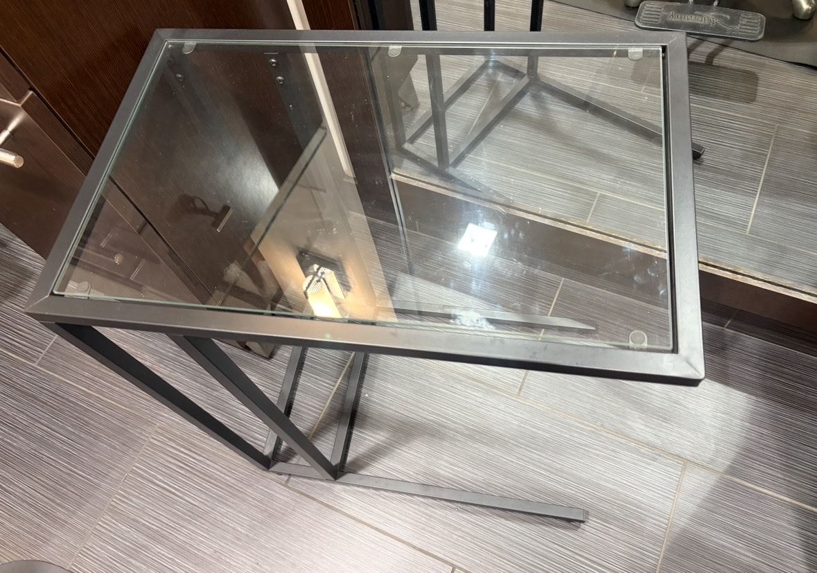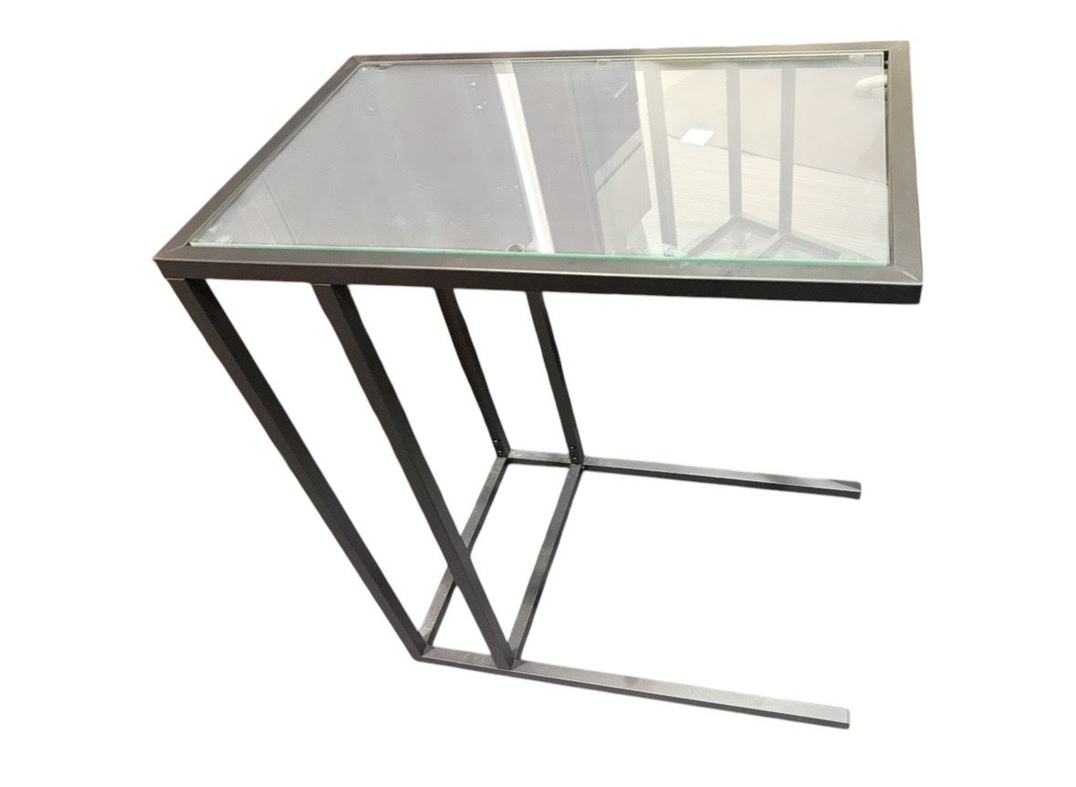 Lot 800J Set of 4 Black Metal C-Frame Side Tables - Smoked Glass & Granite Style Tops