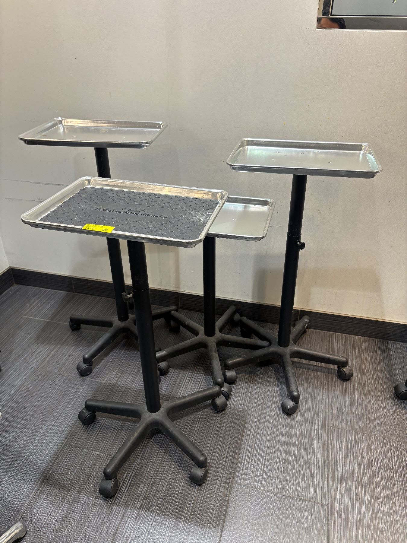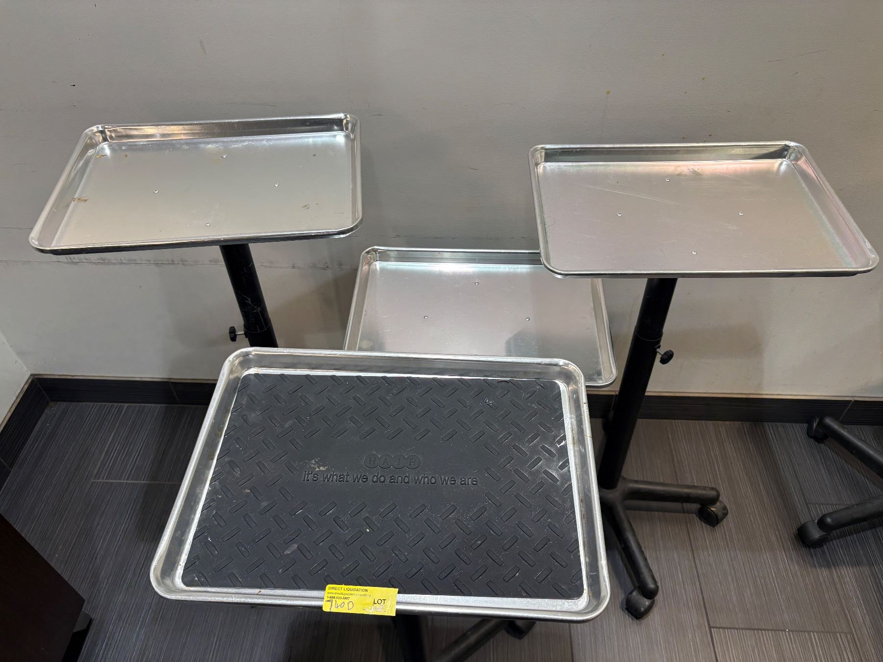 Lot 740D 4 Professional Aluminum Salon Service Trays - Adjustable Rolling Color Stations