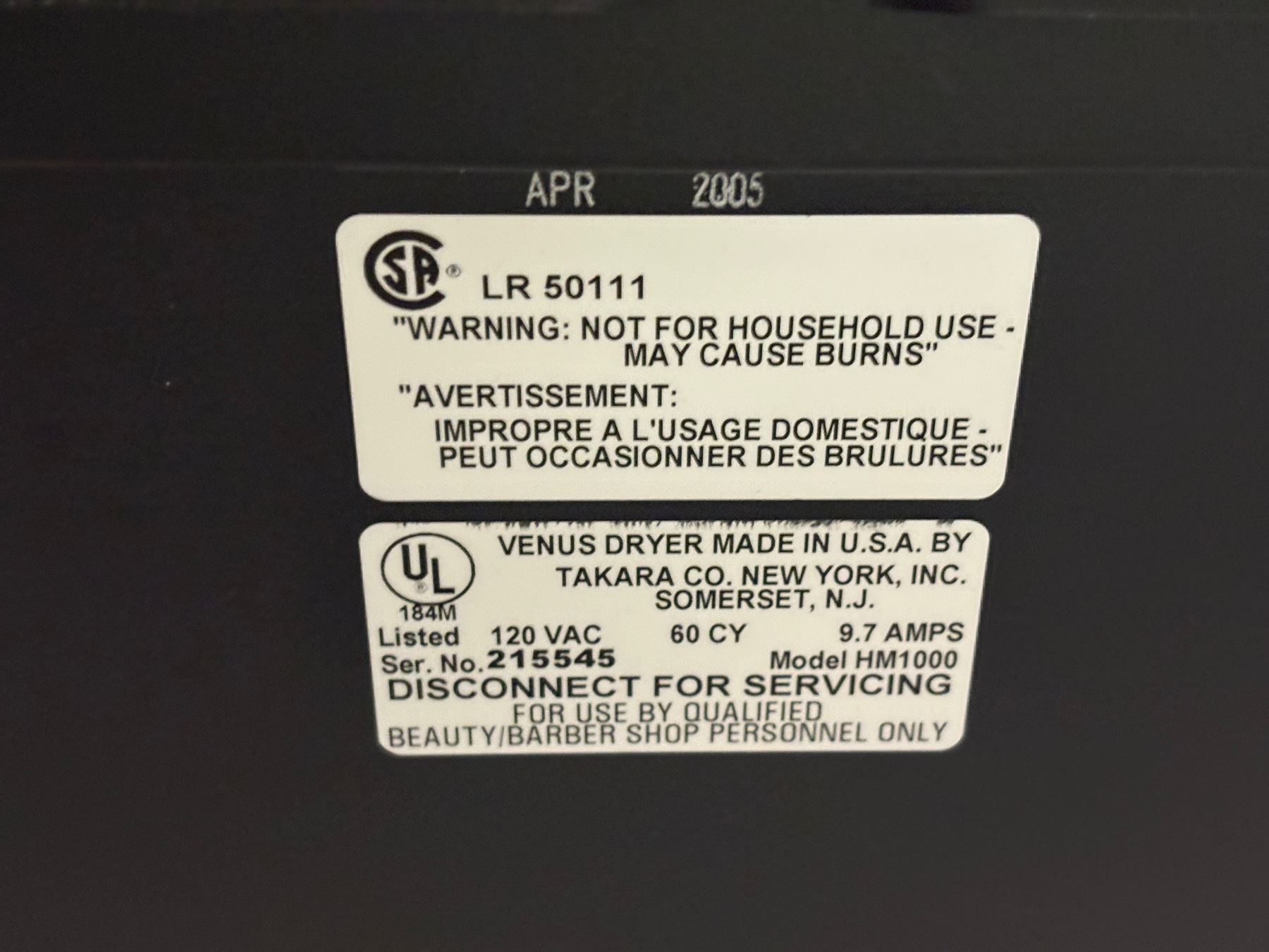 Lot 740H Venus by Belmont Professional Hooded Hair Dryer (no rolling base)