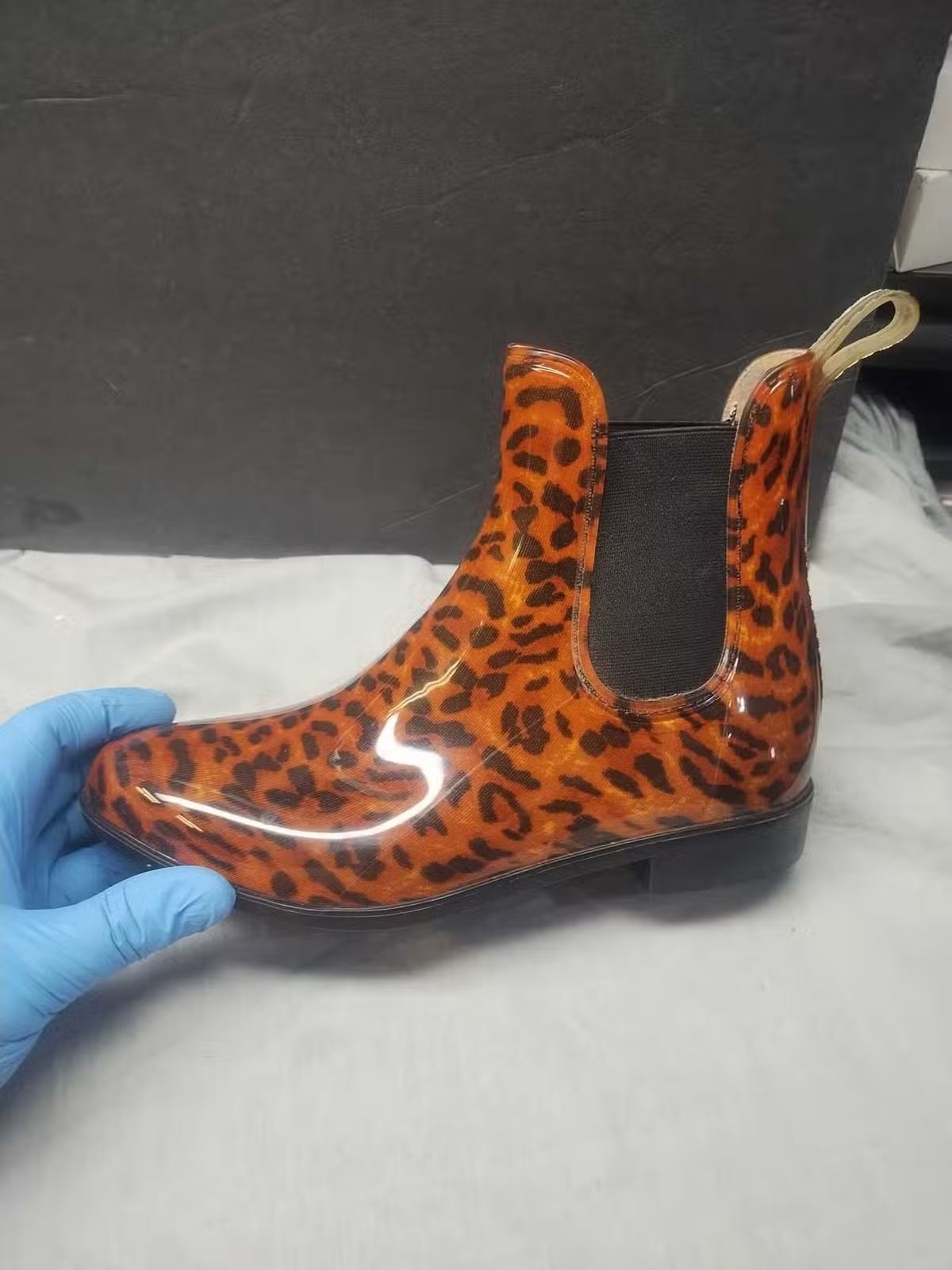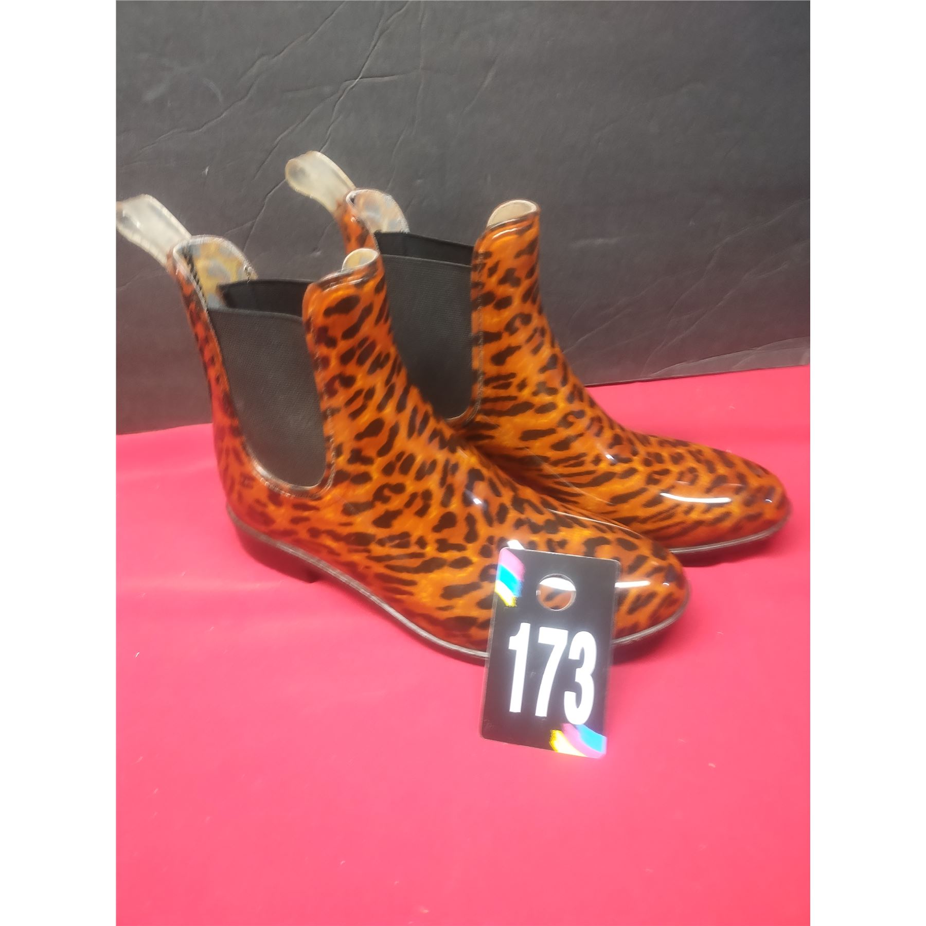 Gently used pair of fashionable womens rubber boots, size us 8.