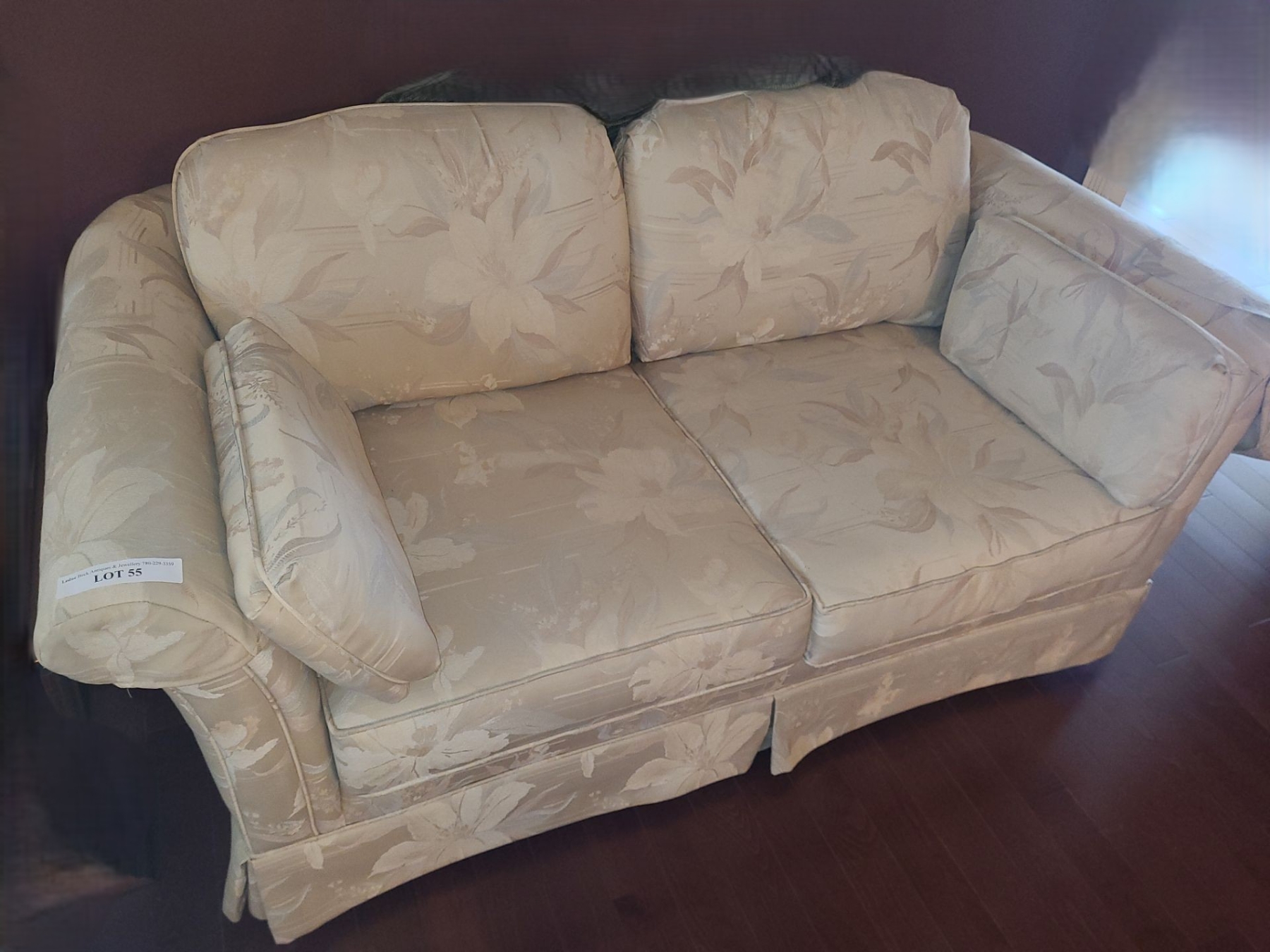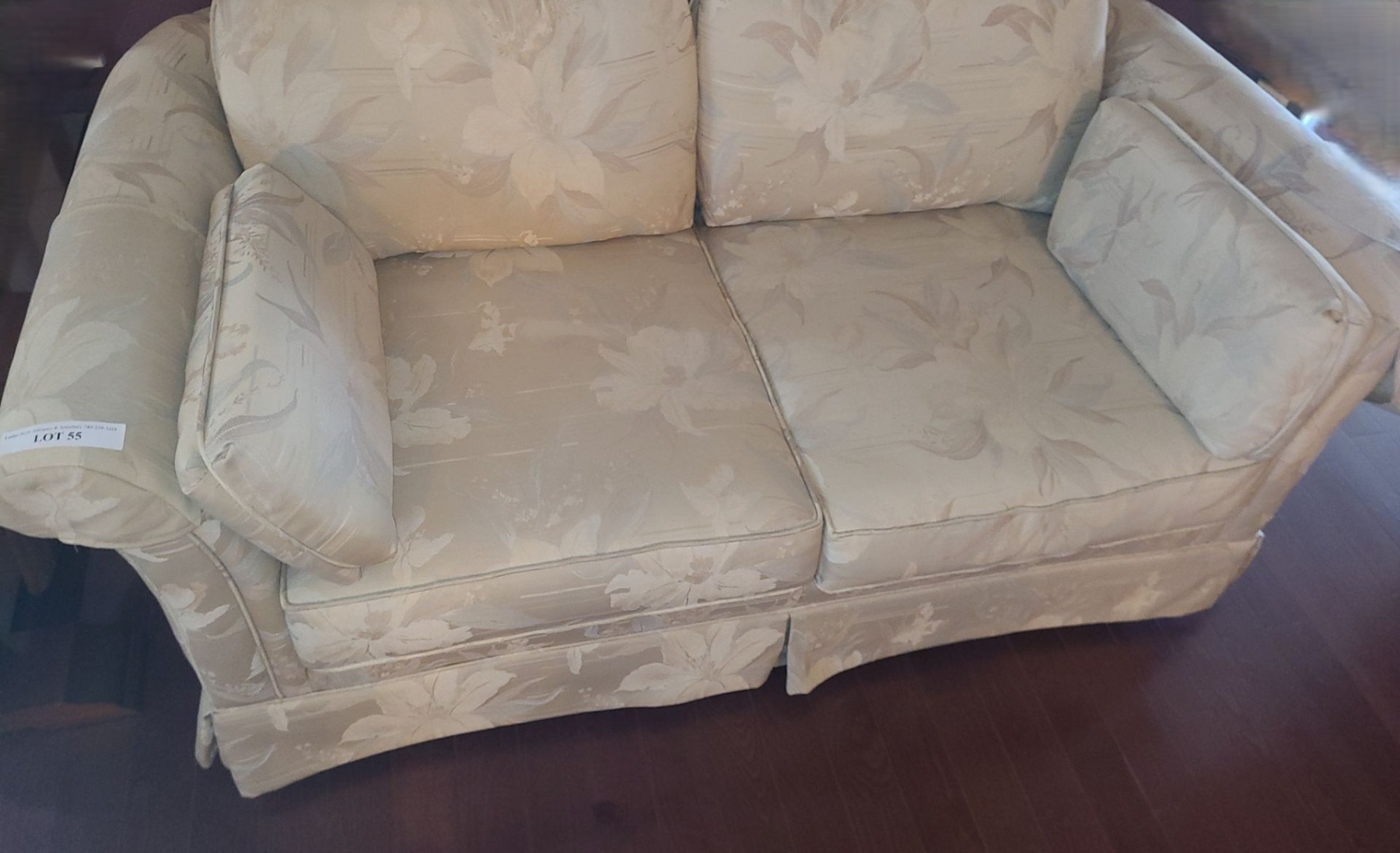 Lot 55 Two Seater Neutral Floral Loveseat 66 w 32 h