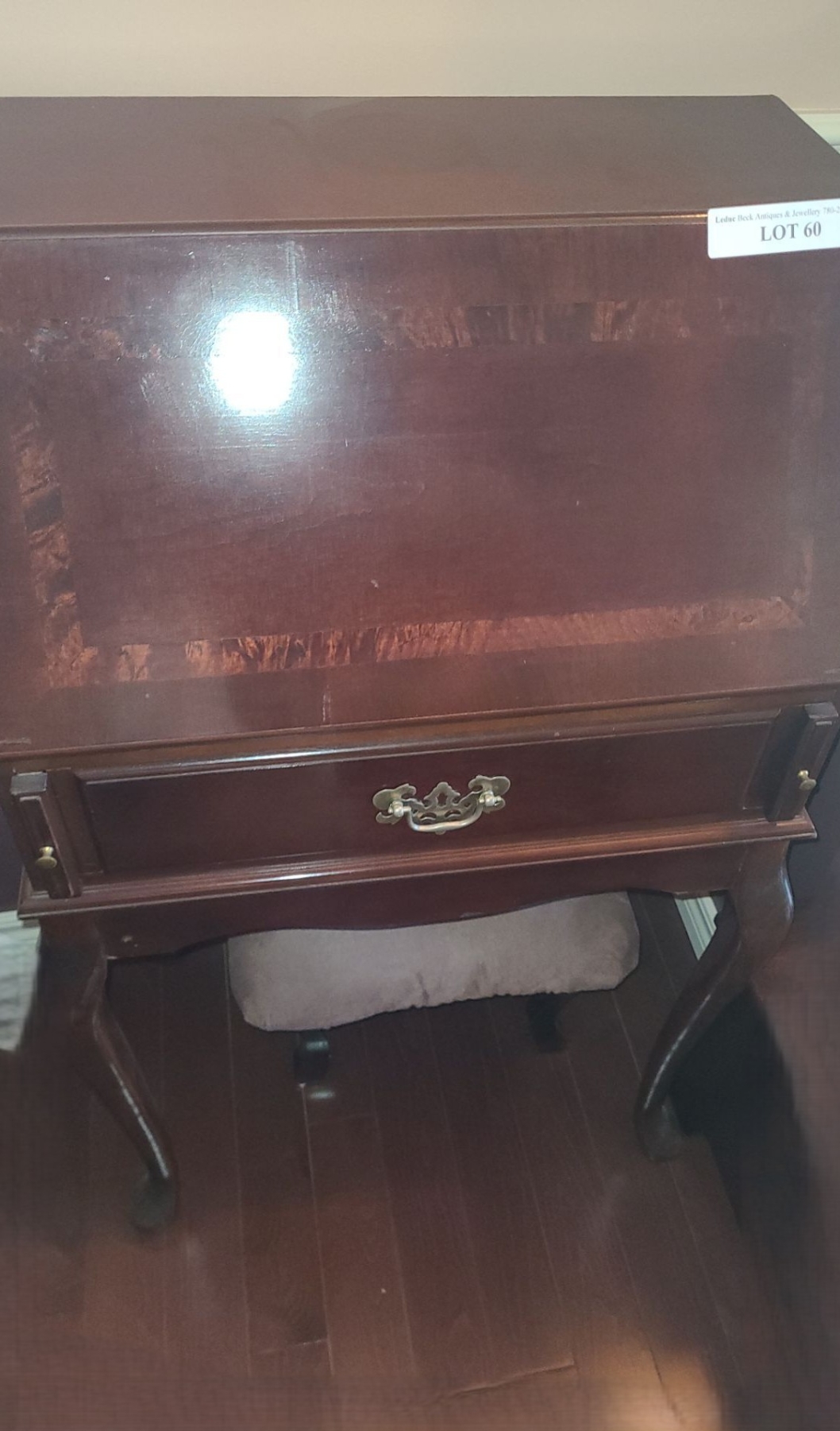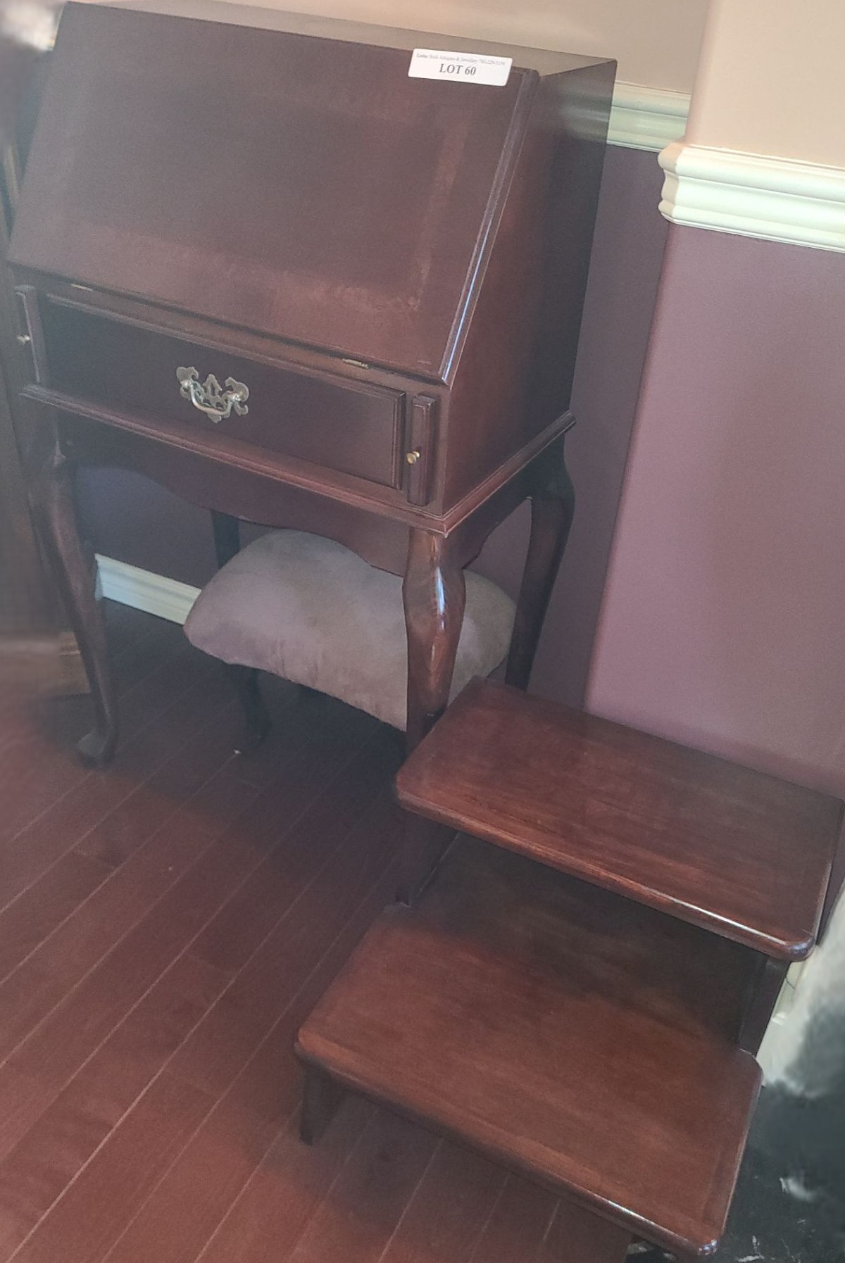 Lot 60 Wood Secretary Desk 22 1/2 w 40 1/2 h & Includes Wood Bed Steps & Small Upholstered Bench