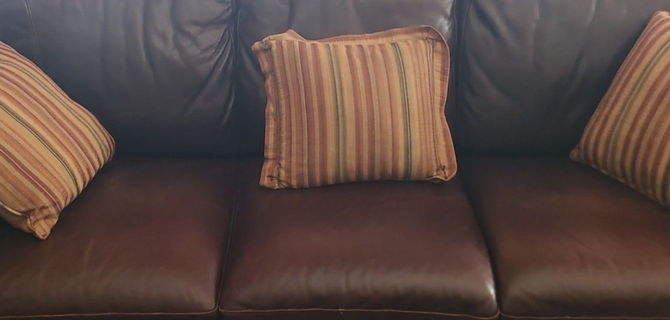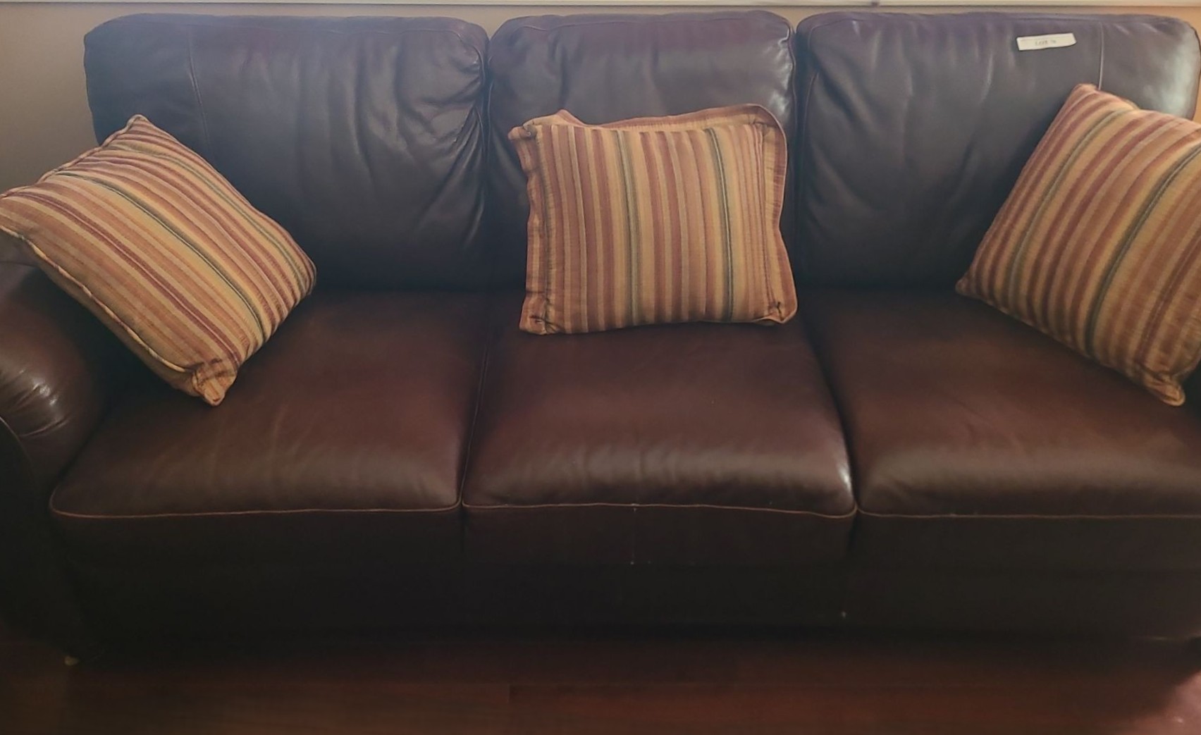 Lot 70 Natuzzi Leather 3 Seater Brown Club Couch w Pillow 92 w 34 h