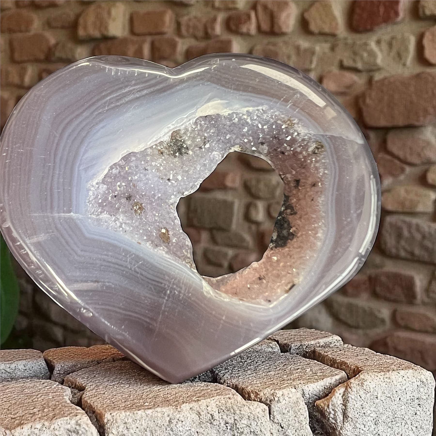 Agate Heart Shaped Stone with natural hole 3.2 inch