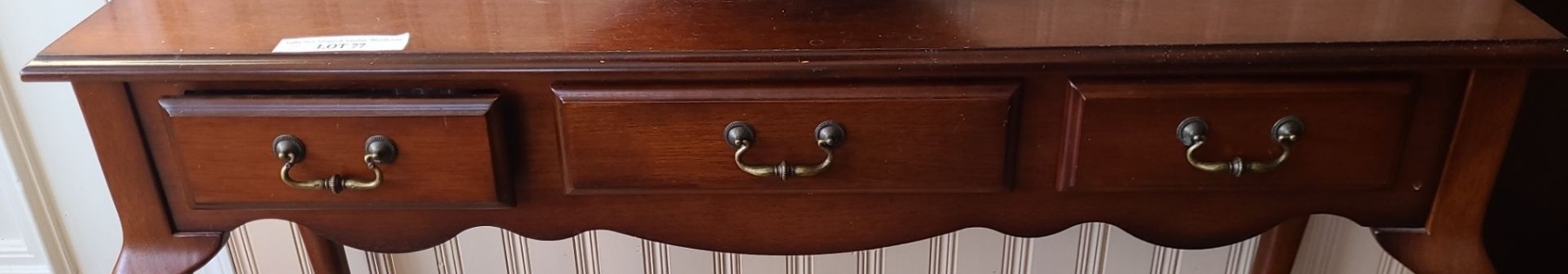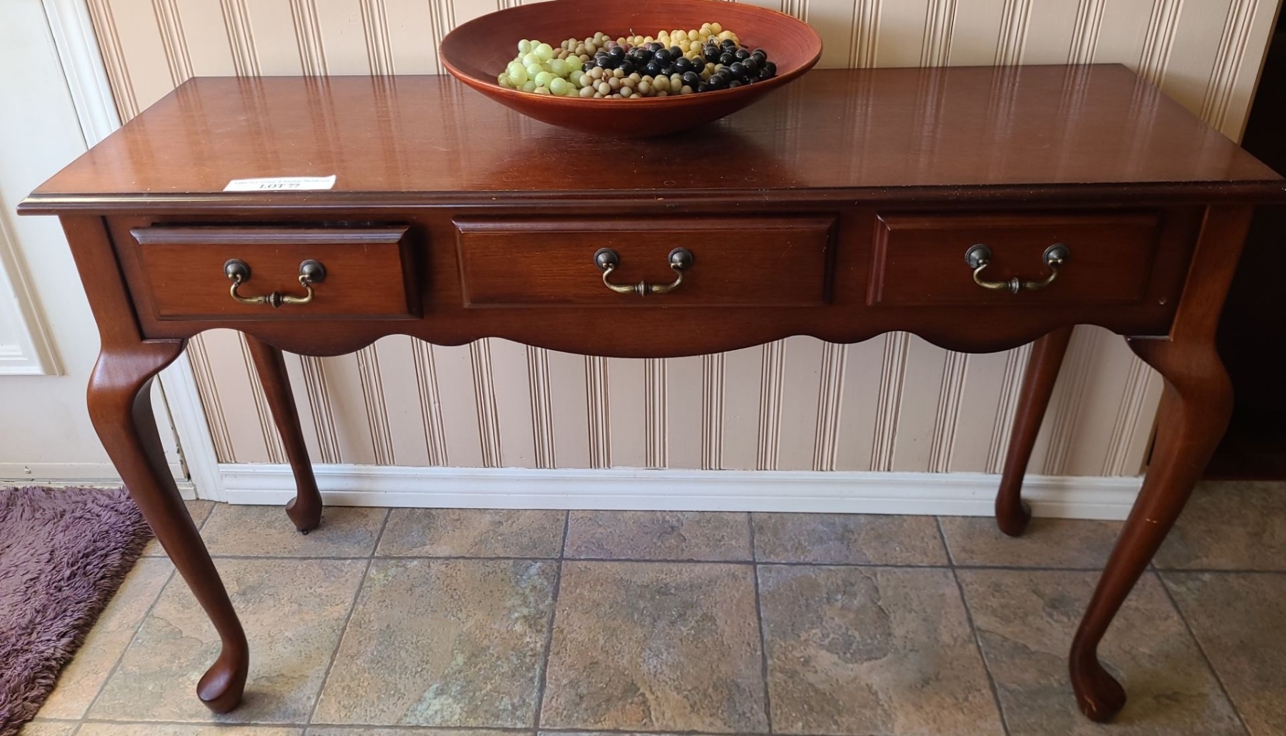 Lot 77 Side Table w 3 Drawers 47 w 30 h, Bowl w Grapes Included