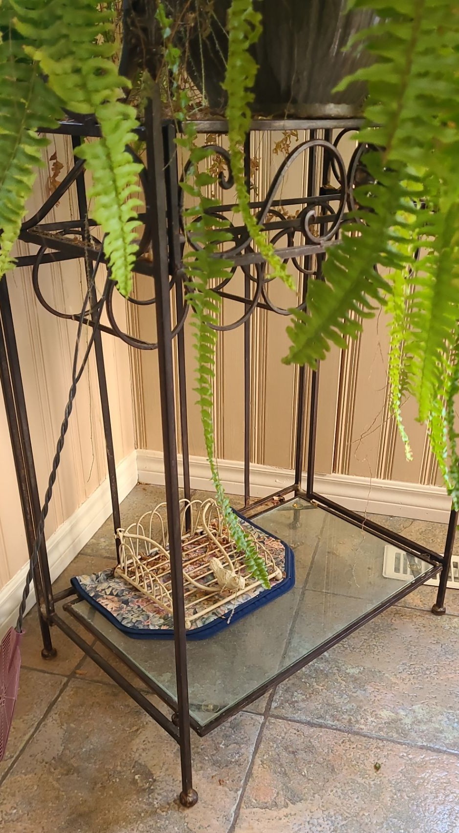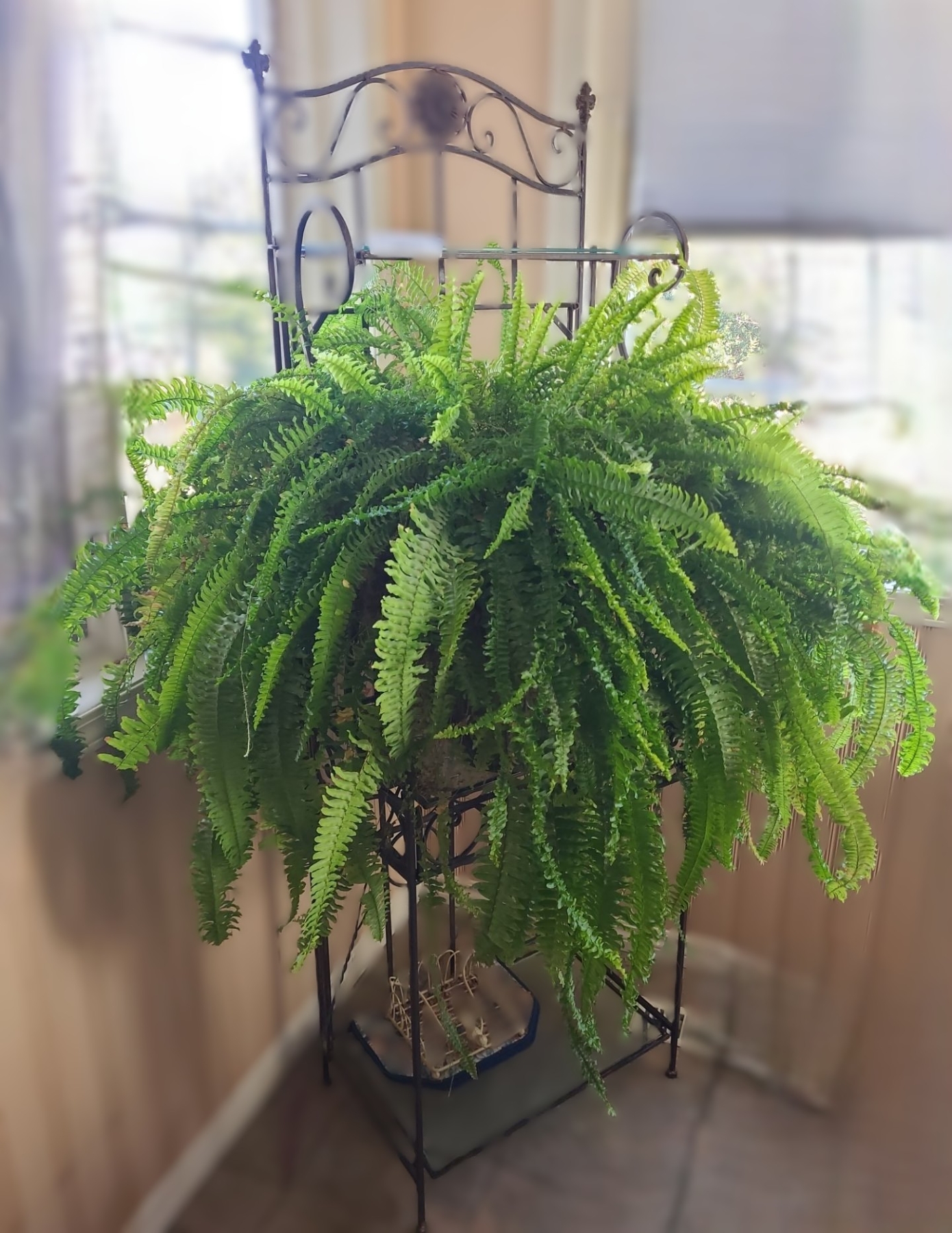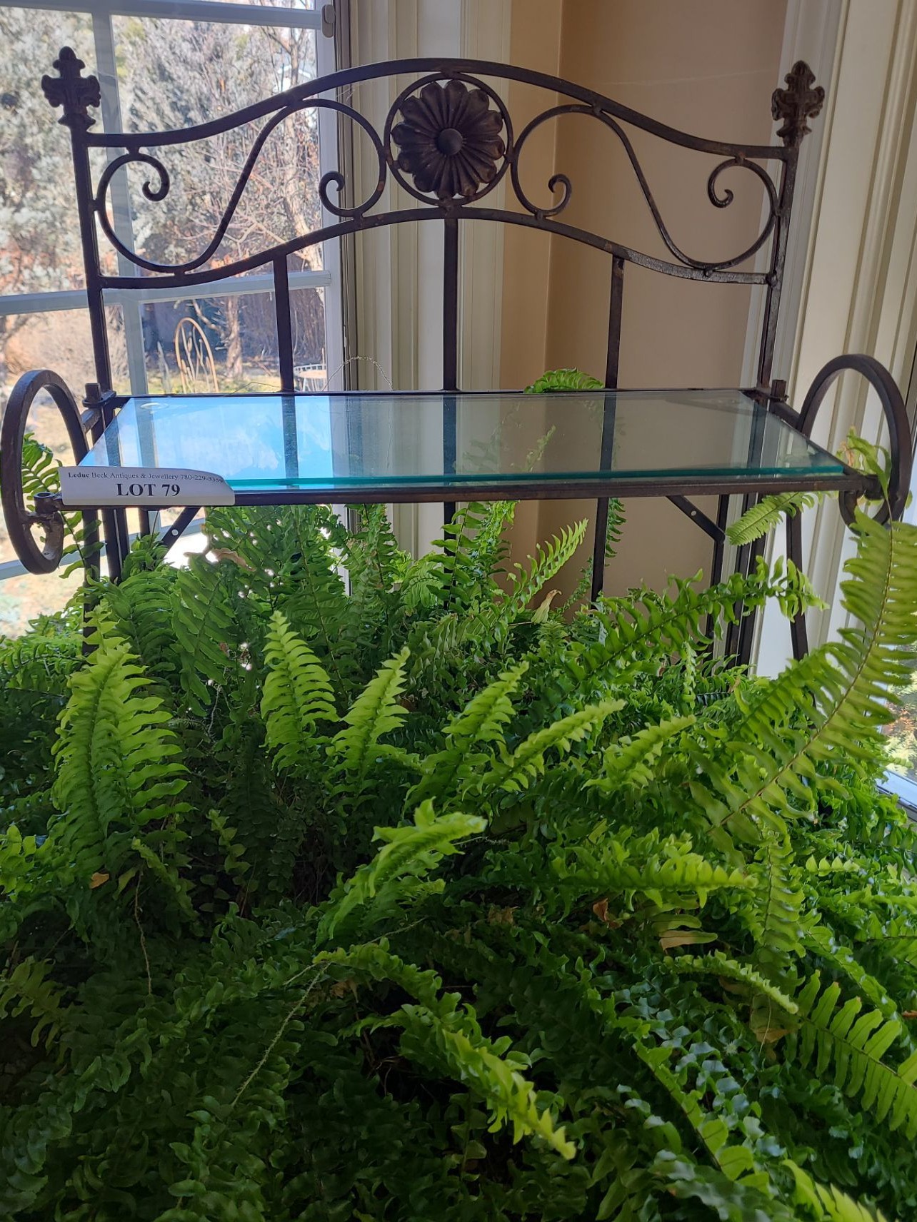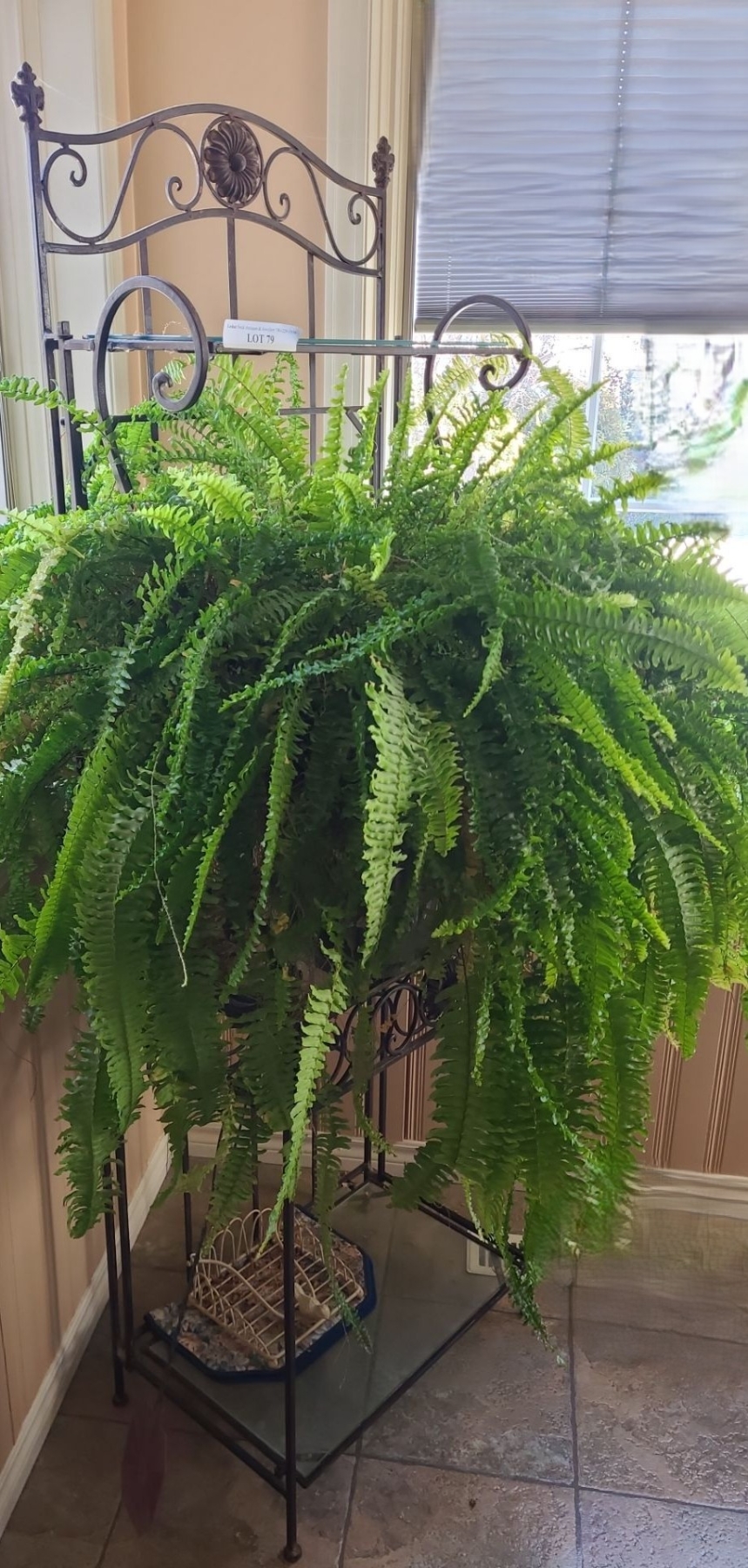 Lot 79 Ornate Metal Bakers Rack 24 w 69 h & Massive Live Fern