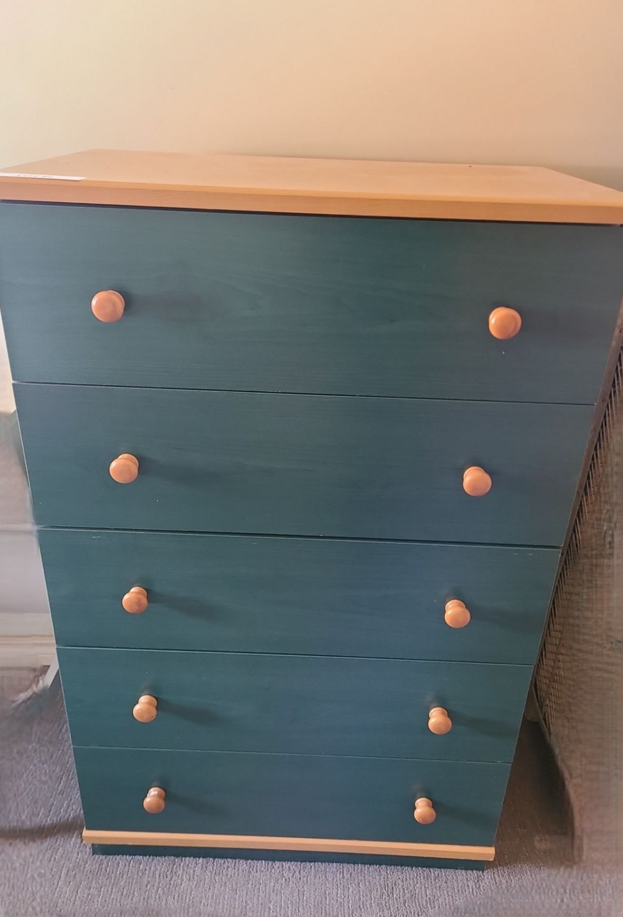 Lot 89 MDF Green 5 Drawer Dresser 28 w 44 h