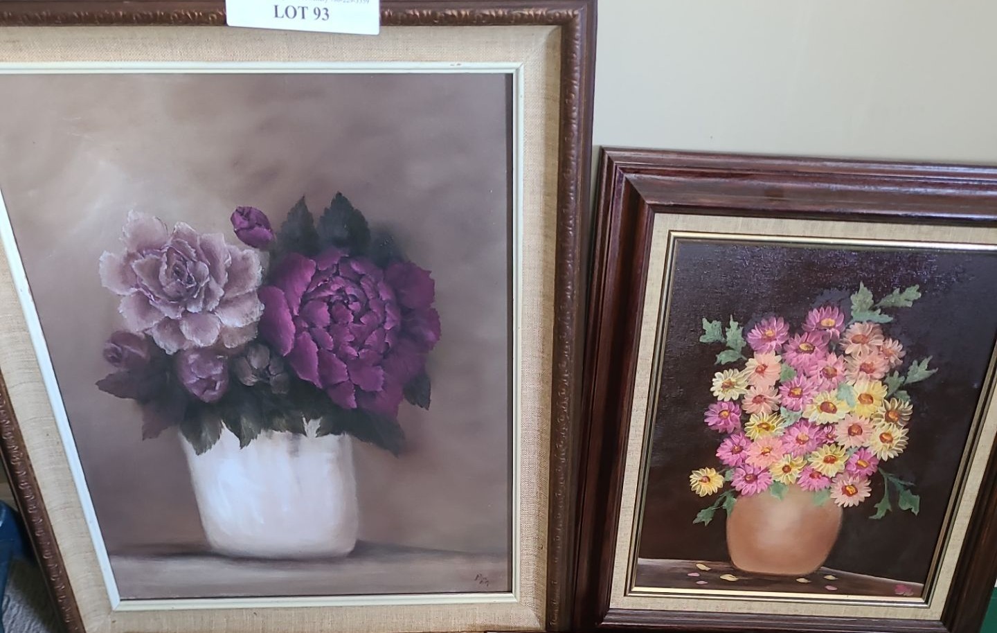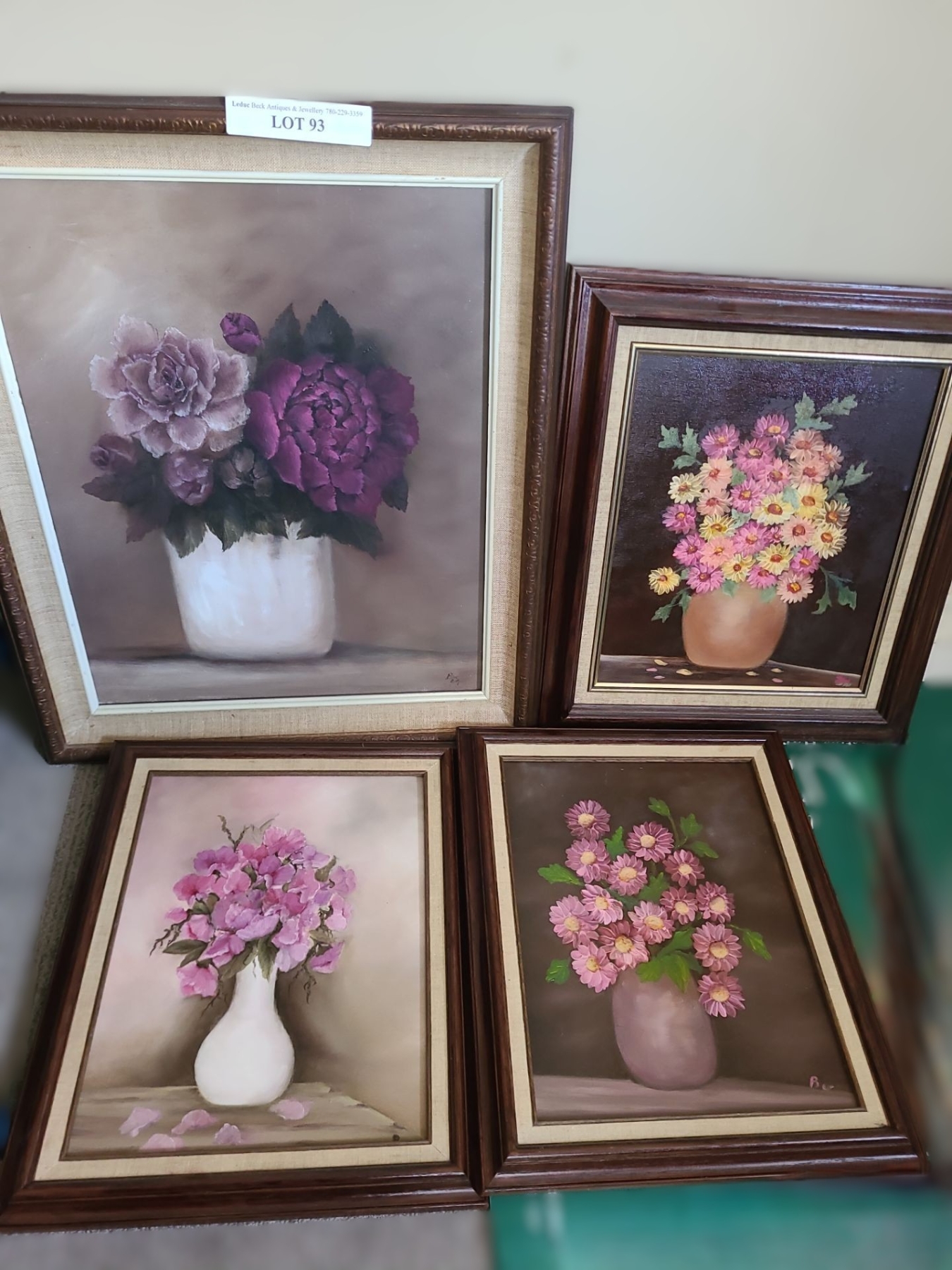 Lot 93 Four Floral Framed Paintings, Purple Roses 20 w 24 h