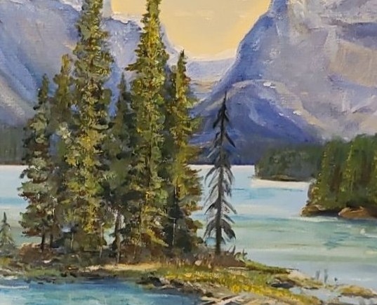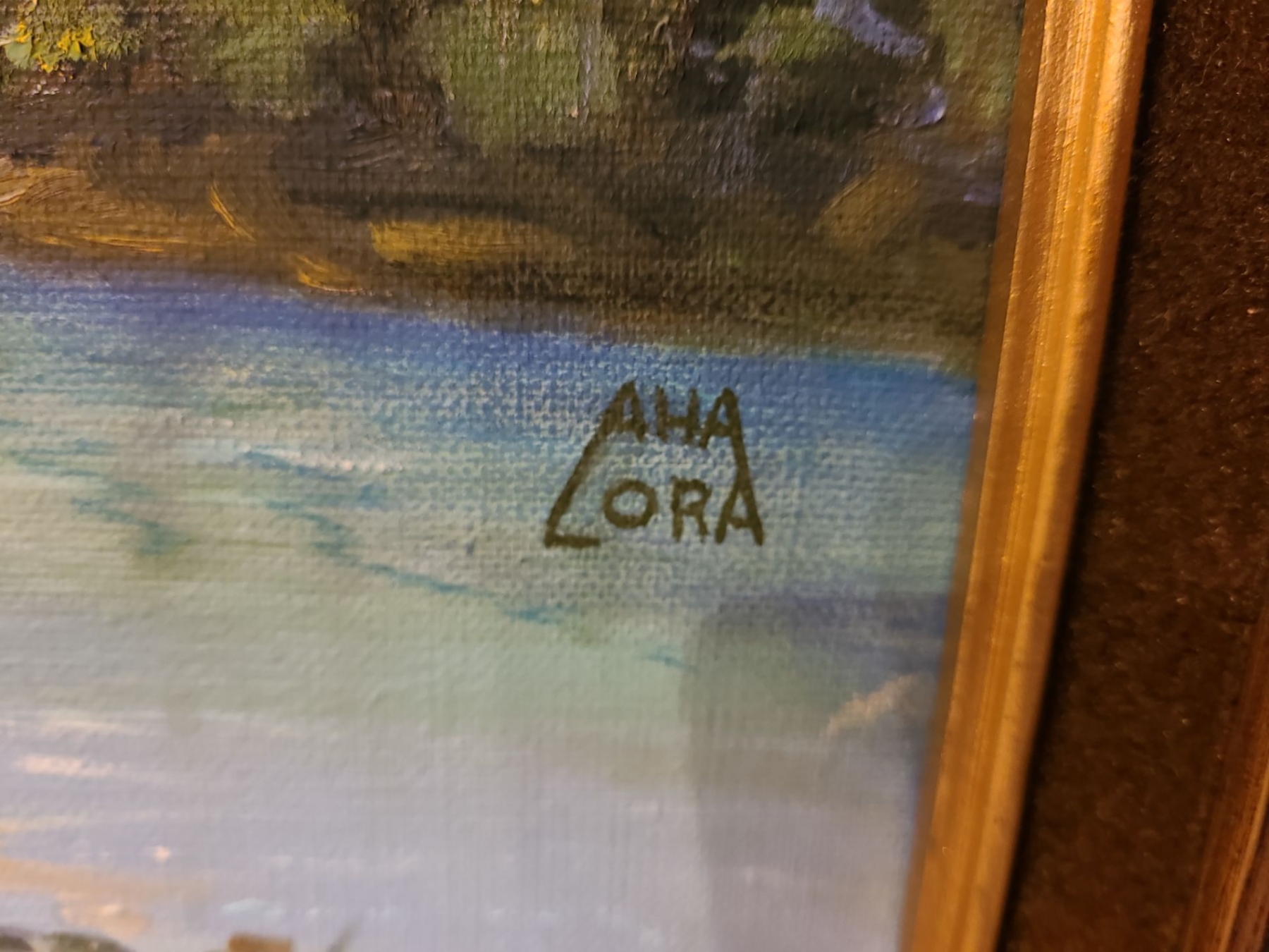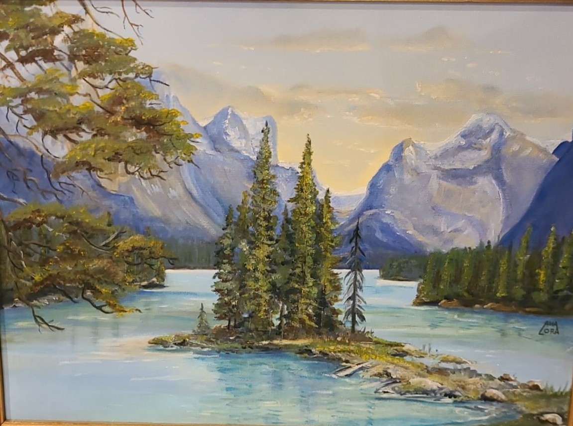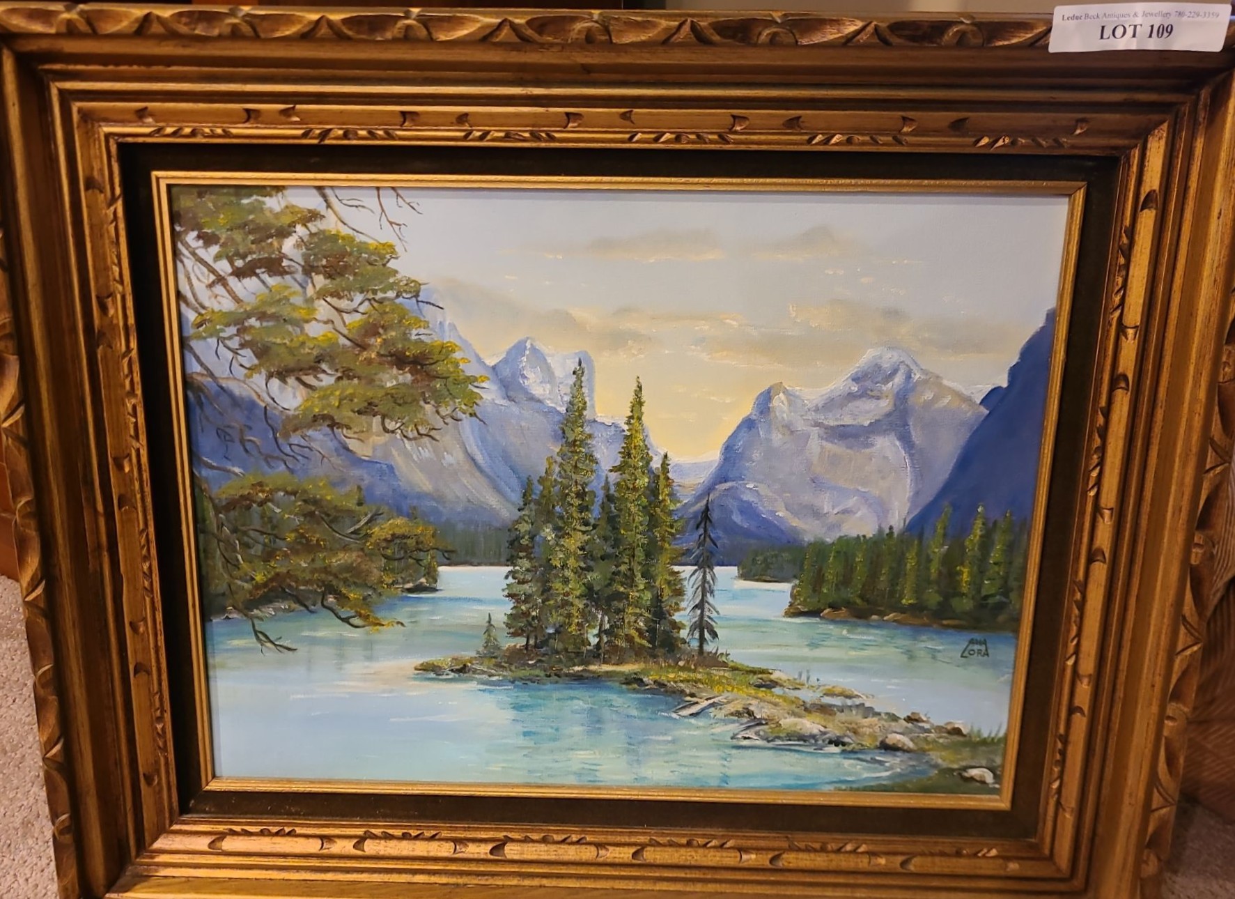 Lot 109 Framed Mountain & Lake Painting 32 w 26 1/2 h