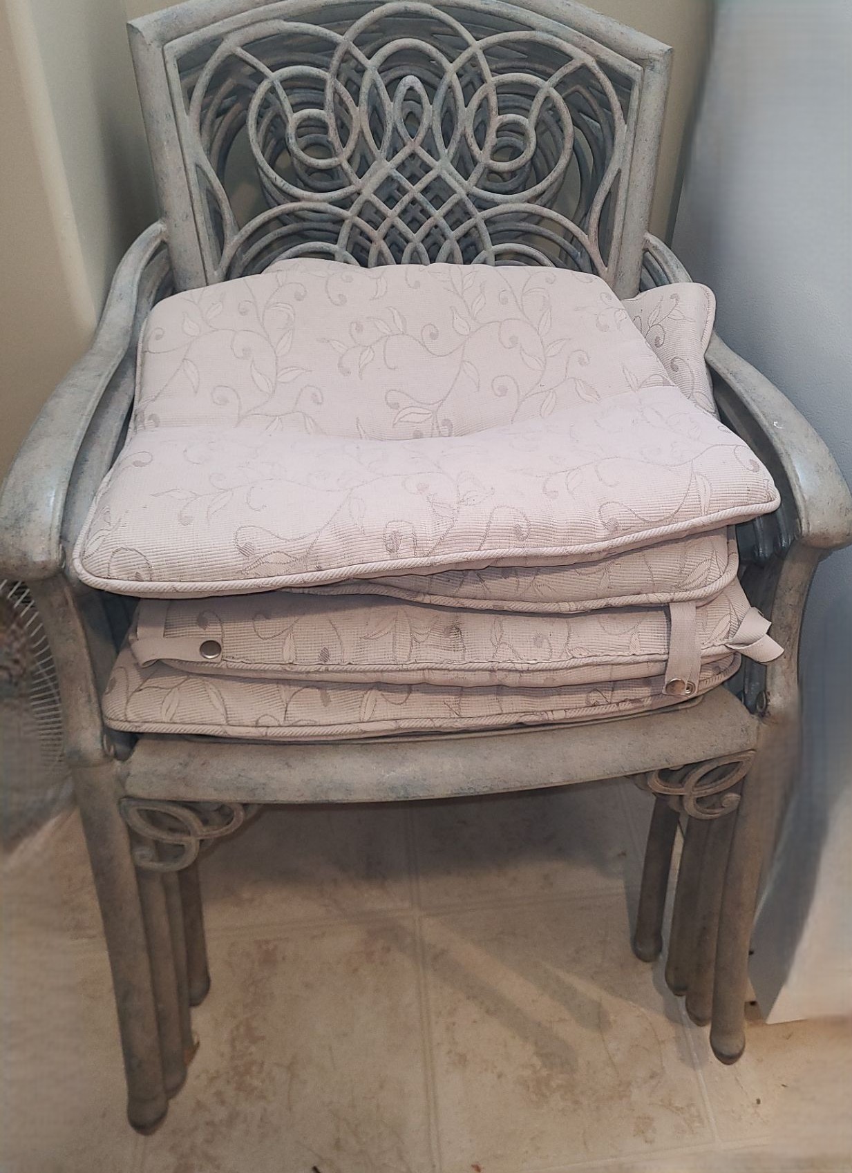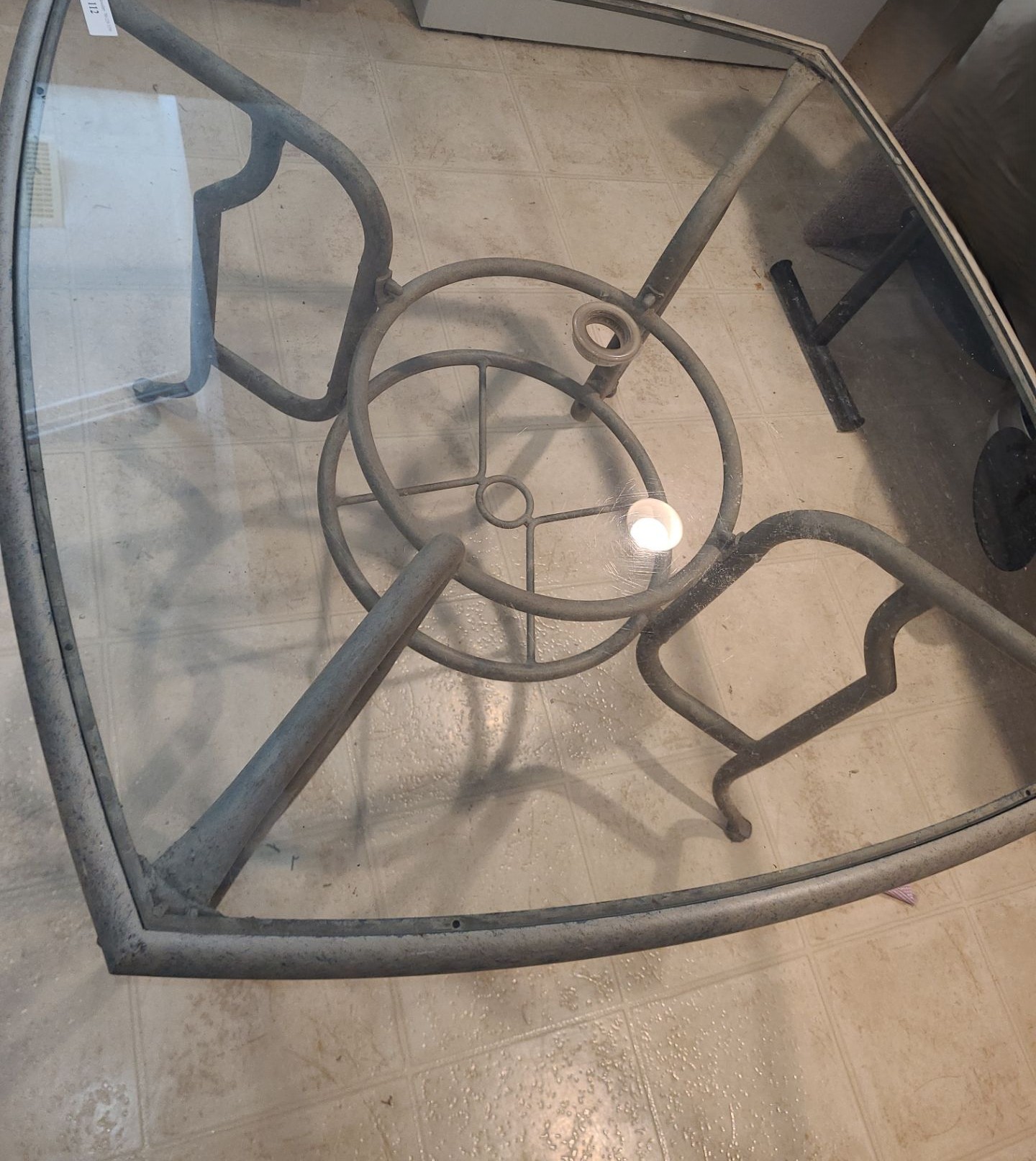 Lot 112 Metal & Glass Table 43 1/2 w 43 1/2 d 28 h, Chairs 26 1/2 w 34 h