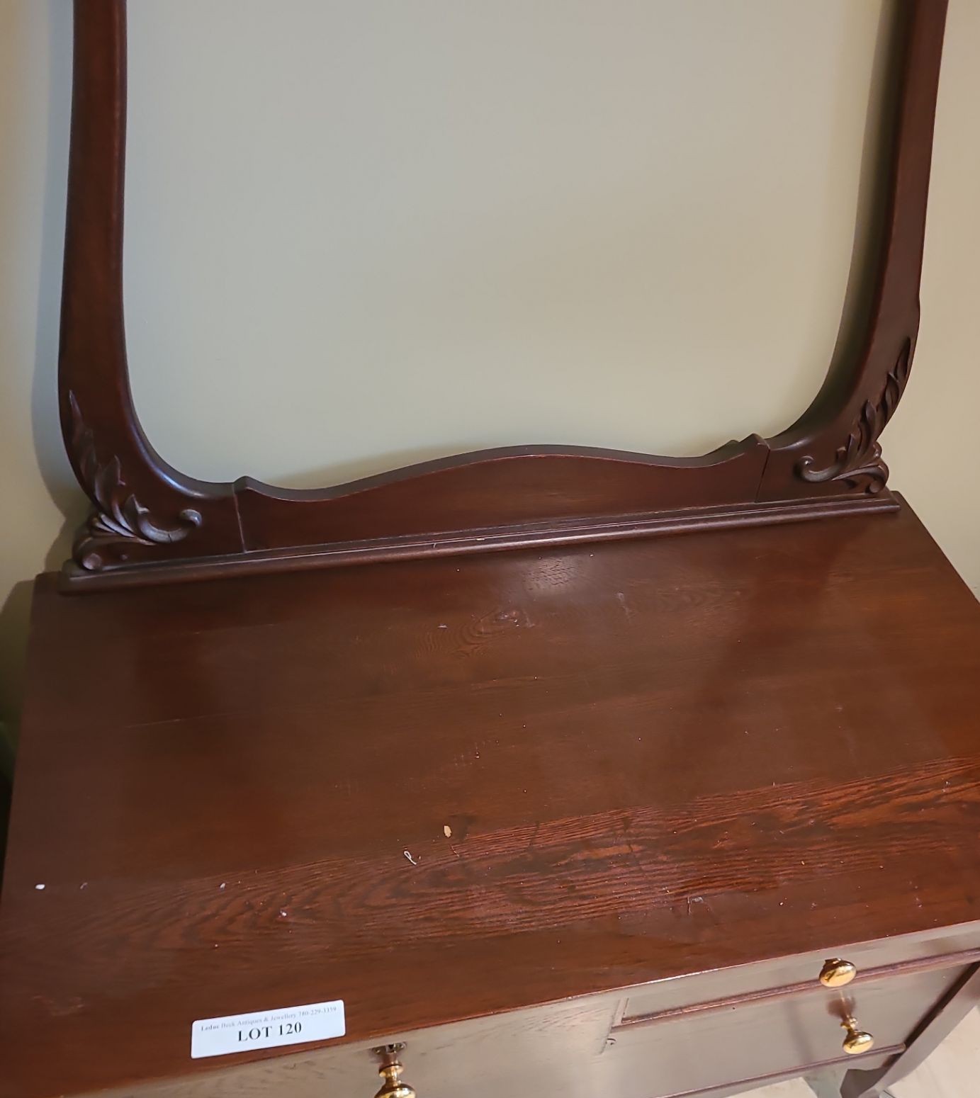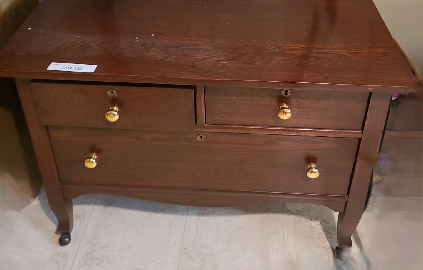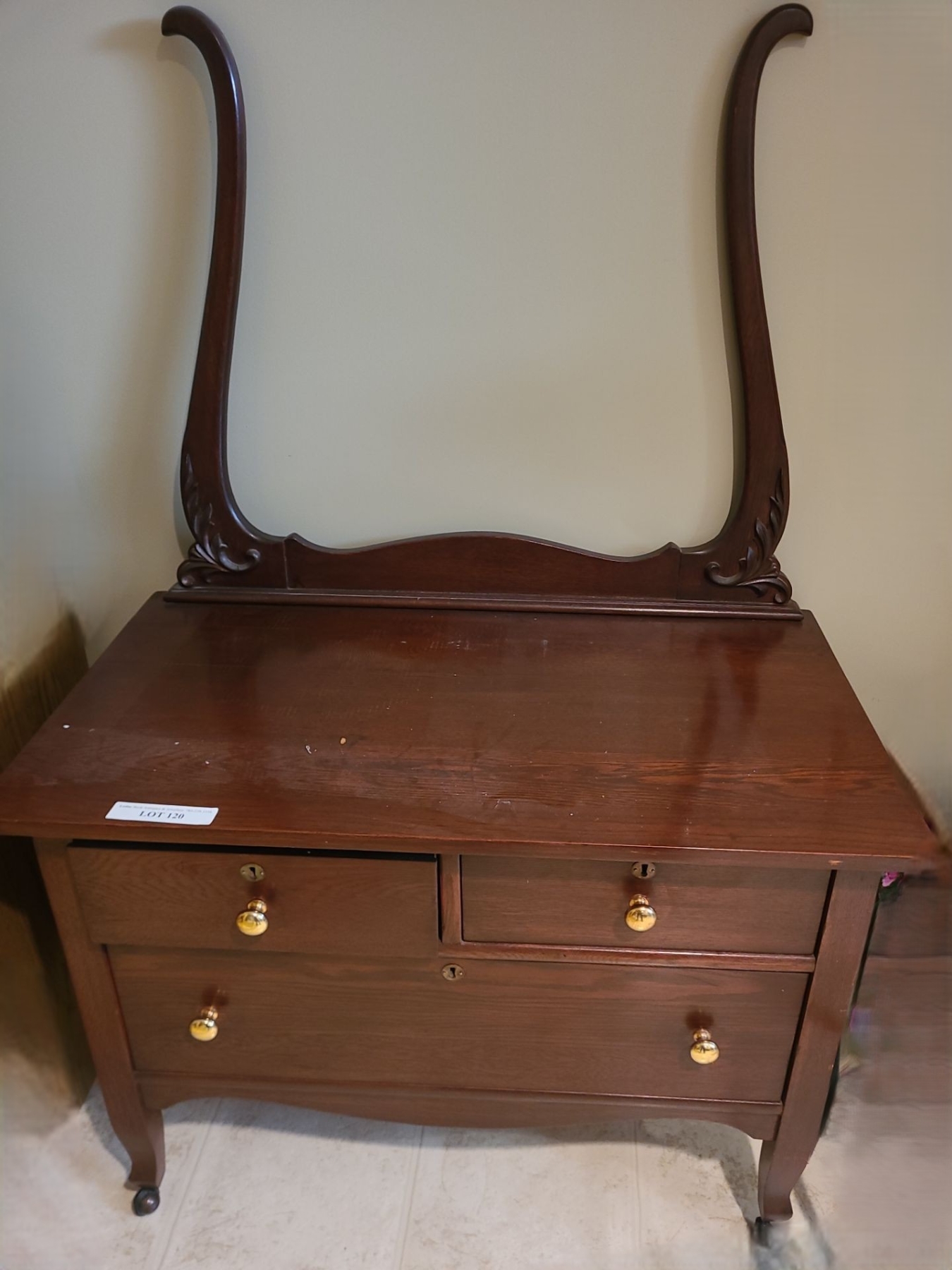 Lot 120 Wood 3 Drawer Dresser (Bar missing) 36 w 54 h