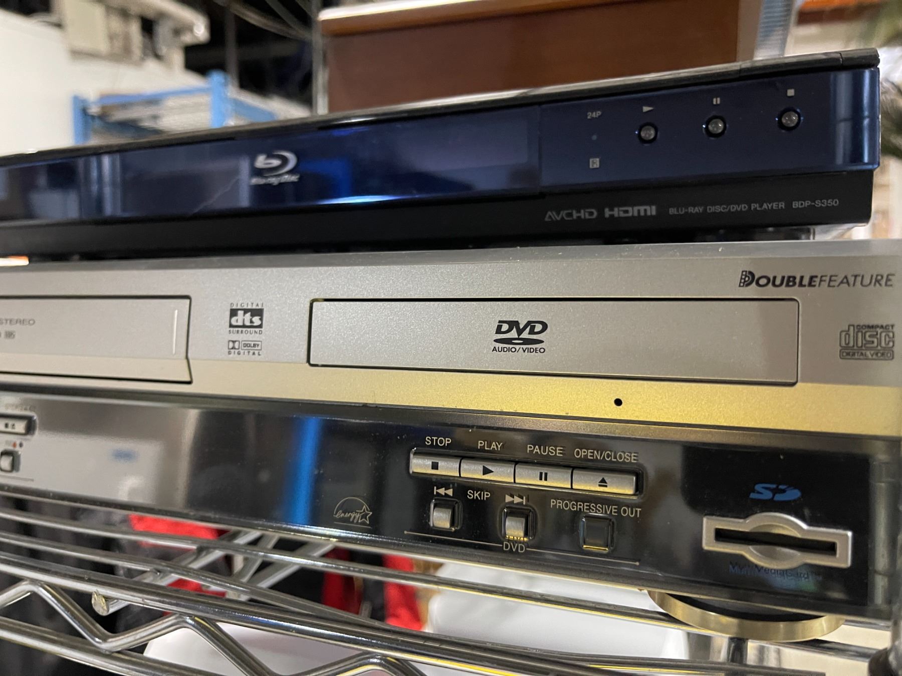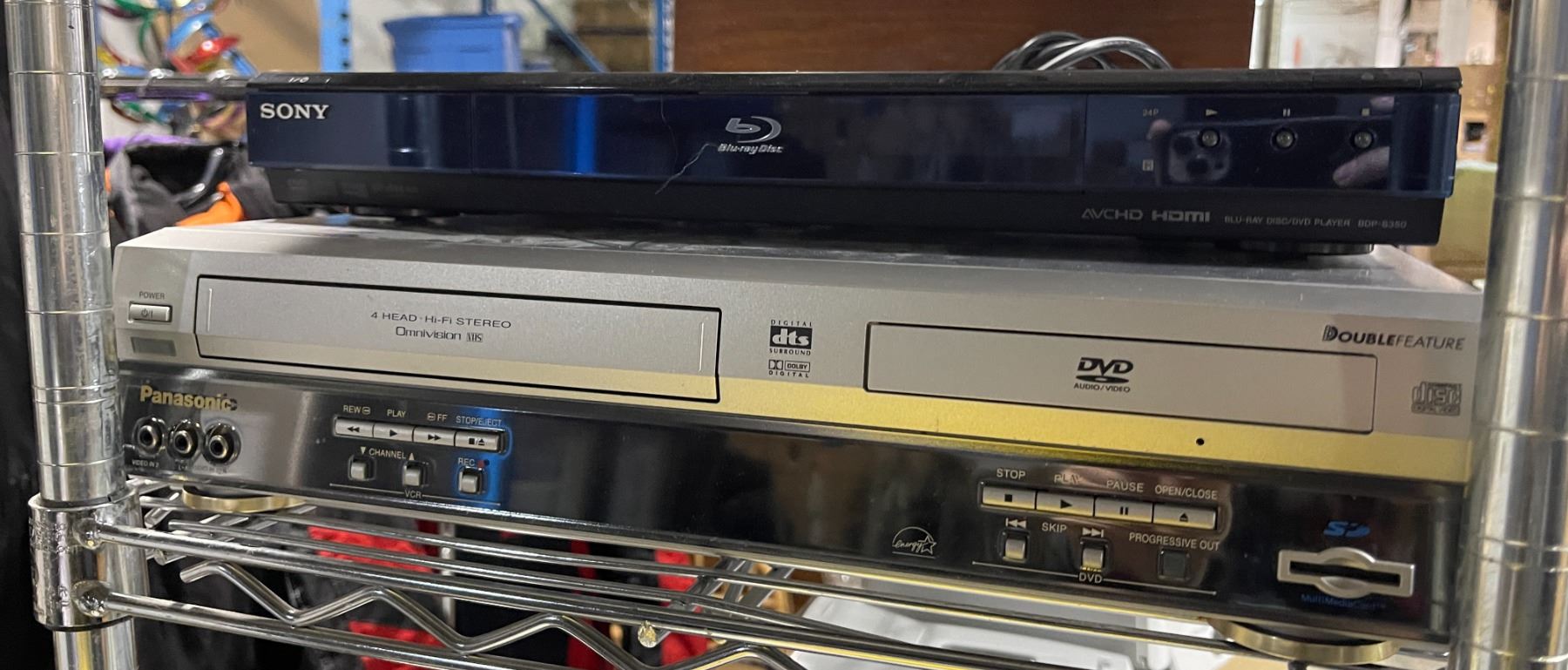 Panasonic DVD/VCR (Model PV-D4763S-K) and Sony Disc/DVD Player (Model BDP-S350)