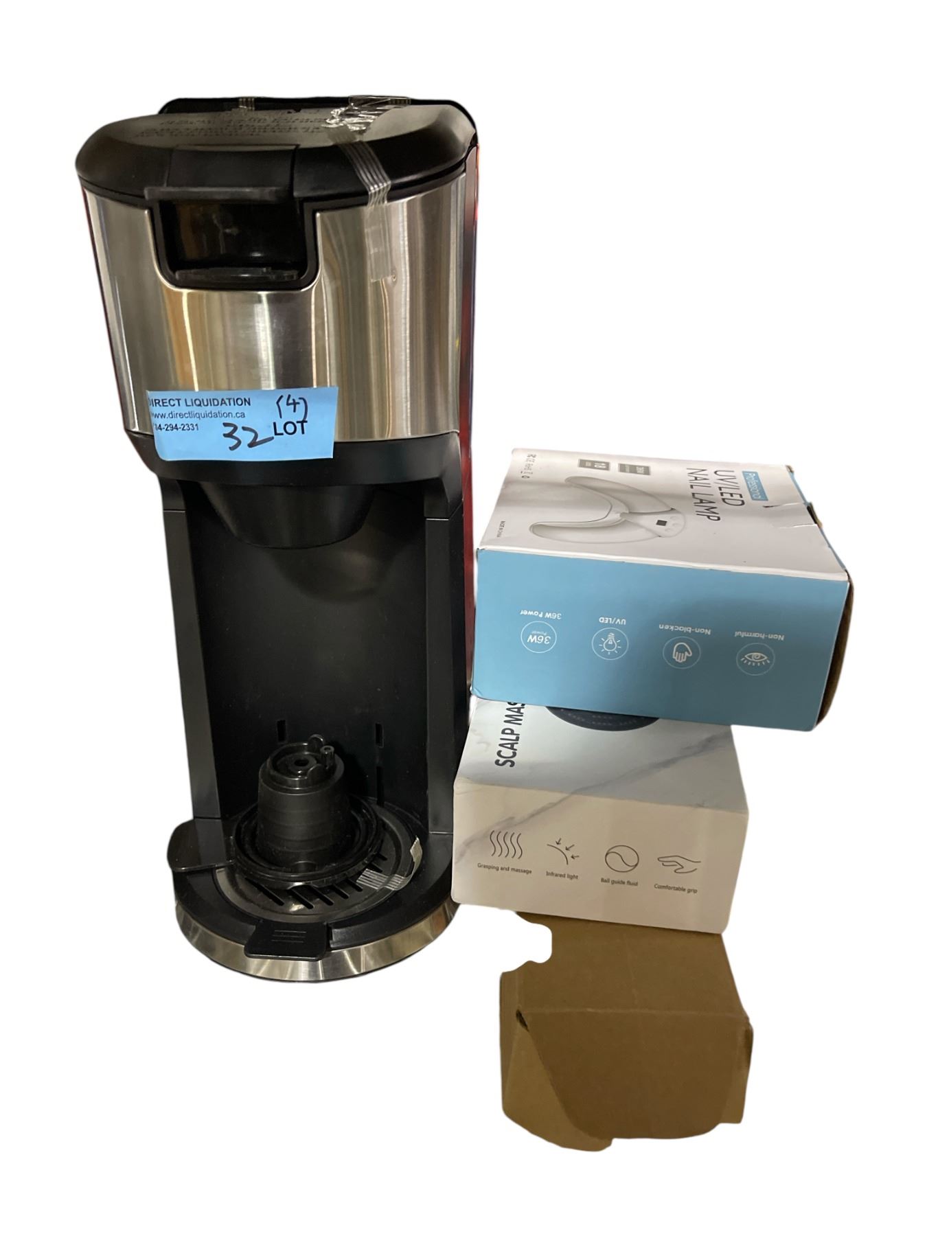 Lot 32 Amazon Baiscs Coffee Manchine, Massge Comb, Nail Lamp