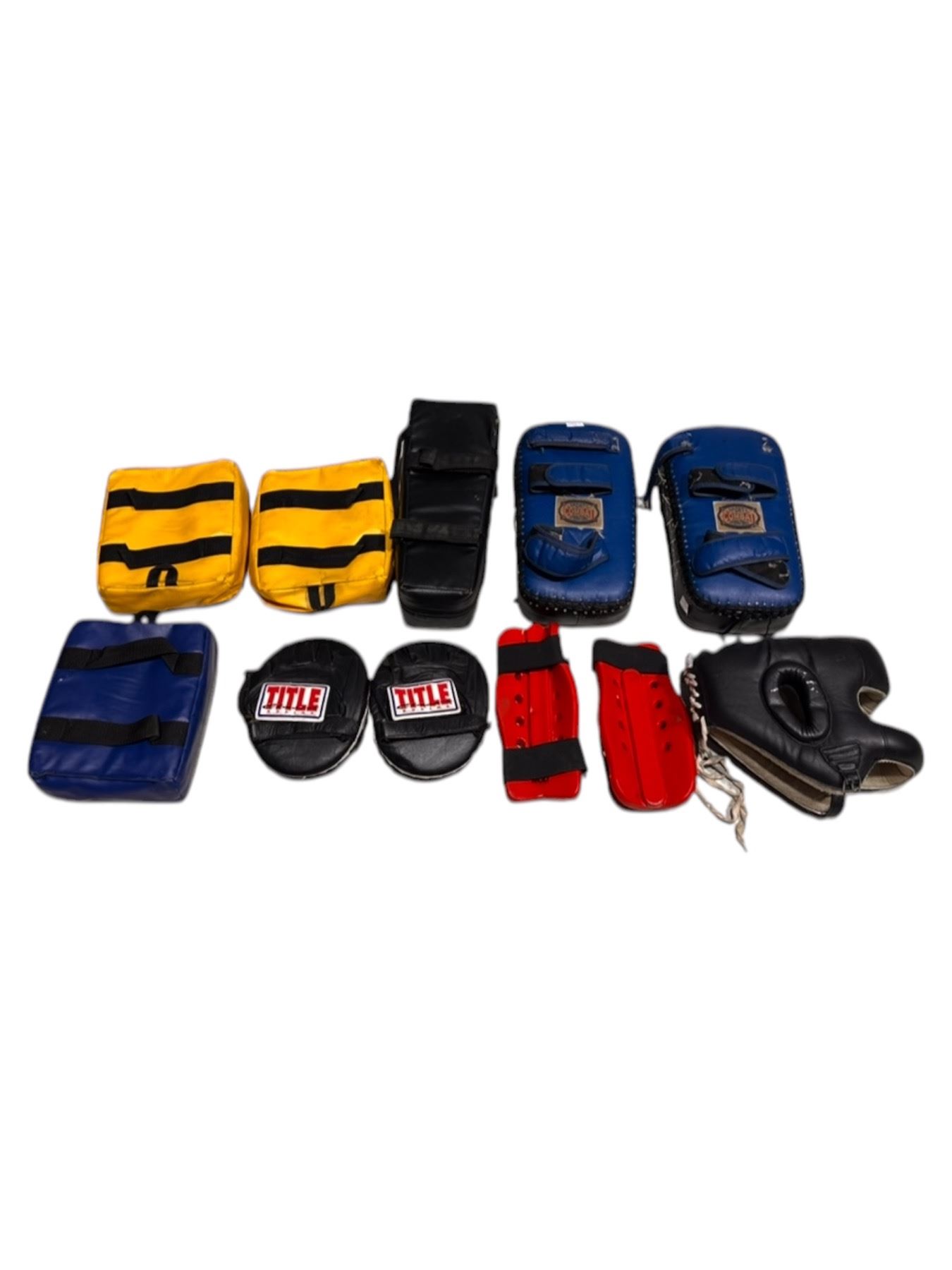Group of Martial Art Training Gear (Head Gear - Punch Mitts - Kicking Pads)