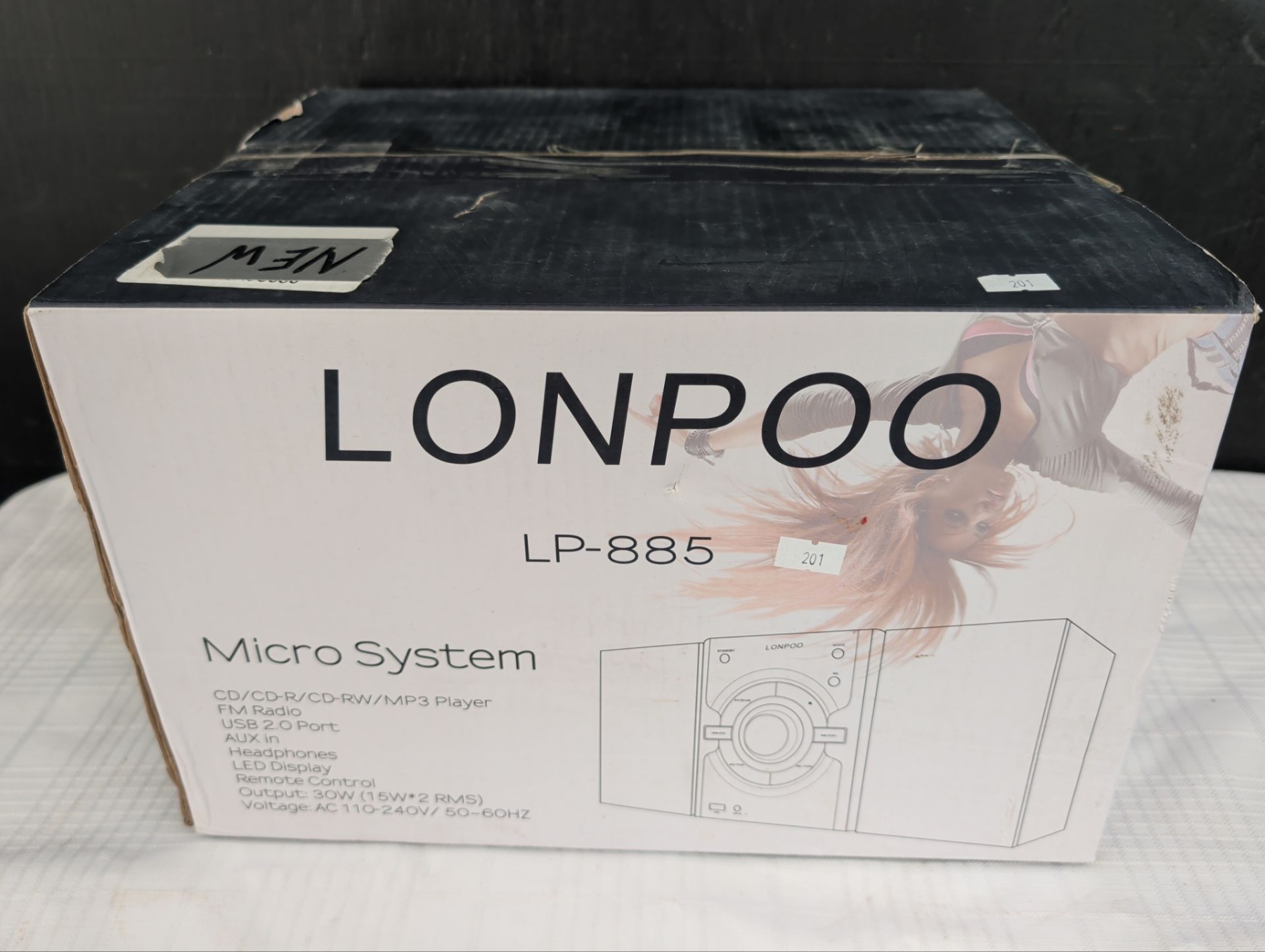 Lot 201 NEW Lonpoo LP885 Micro System - CD MP3 AM/FM USB 2.0 Aux In Headphones LED Display