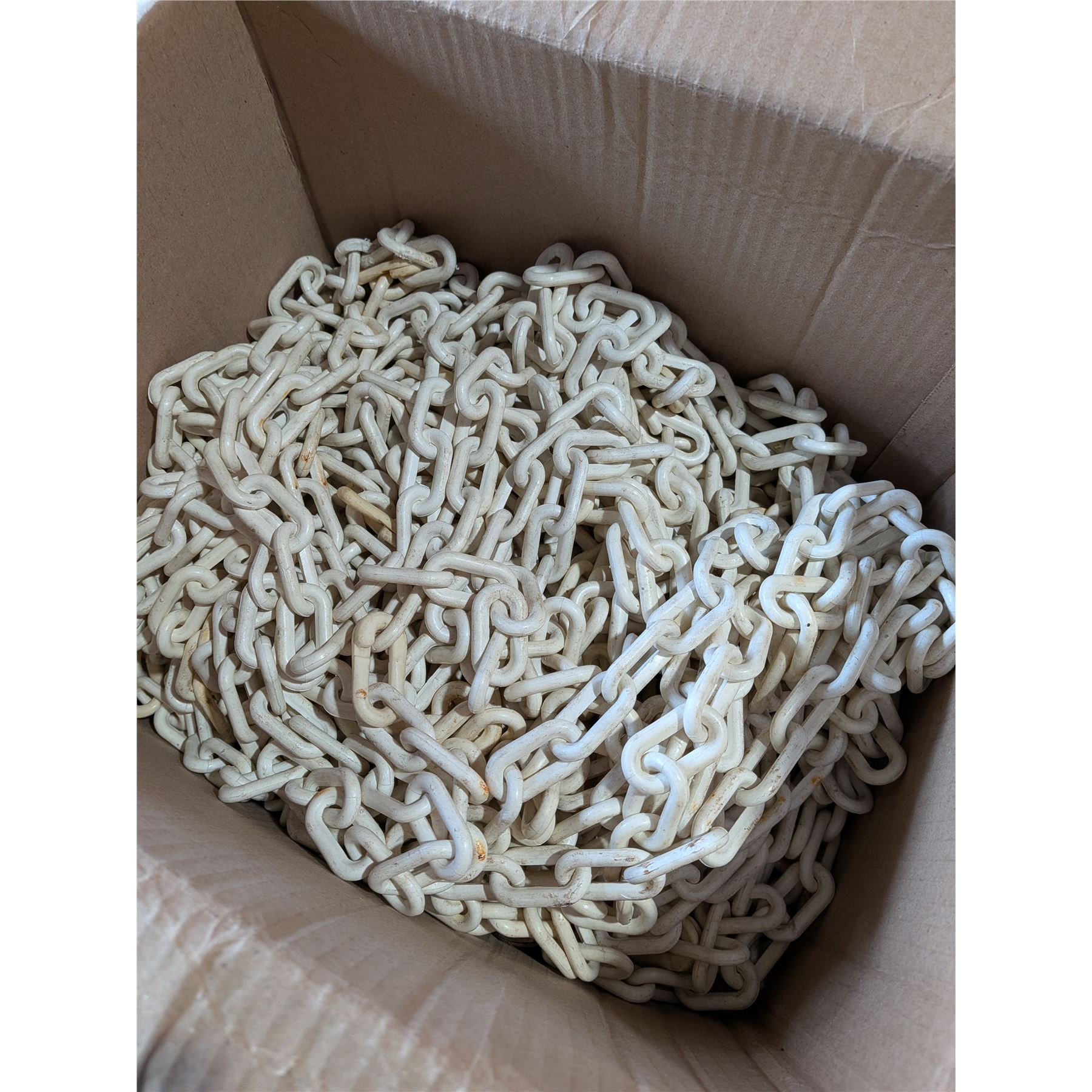 (56' weighed in at 3lbs = .05lbs per foot.Total box weight 12 lbs/3 lbs = 4 x 56' = 224') Just an estimate there's a lot of chain