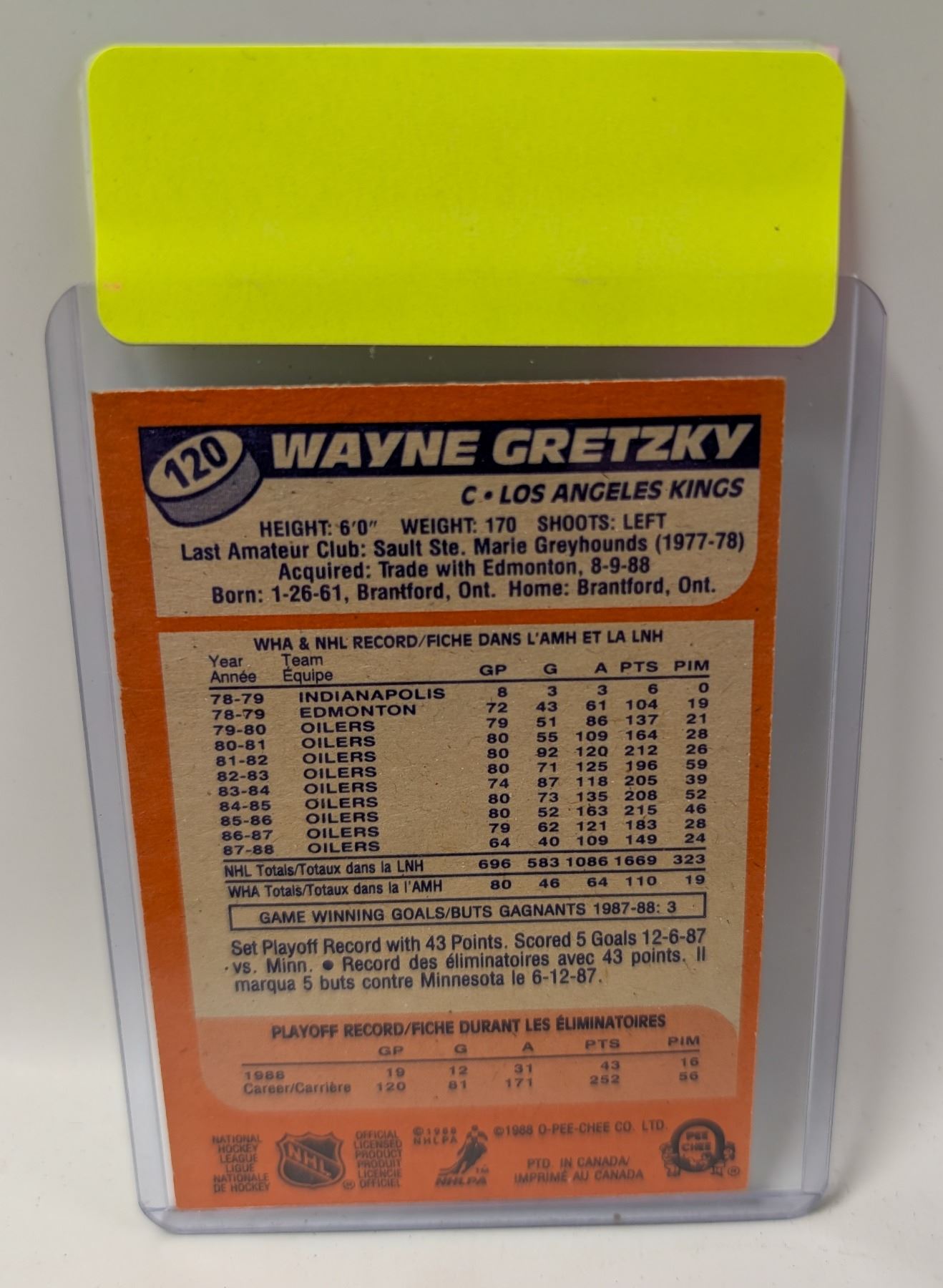 Lot 9160 1988 OPC WAYNE GRETZKY HOCKEY CARD 120