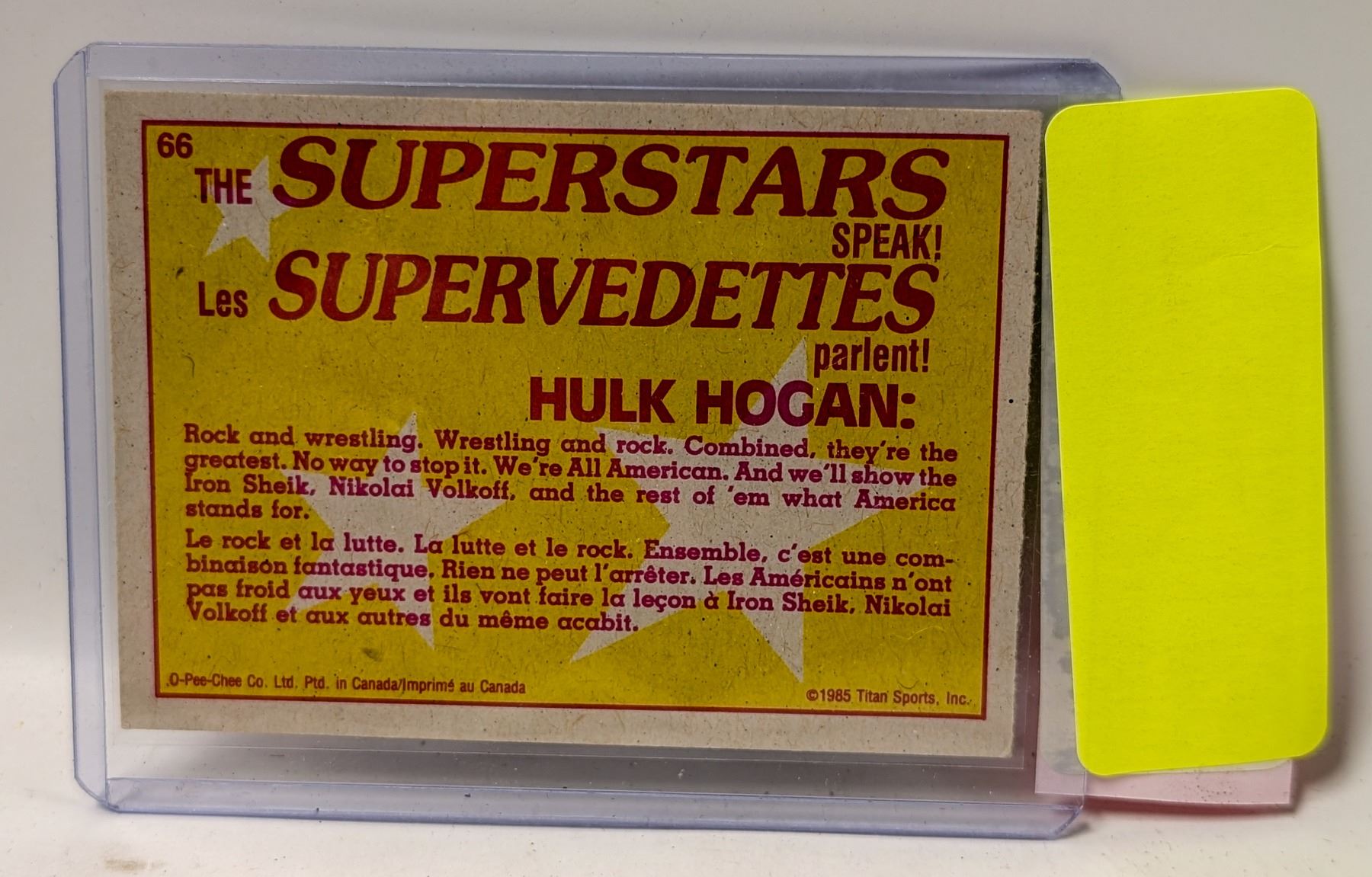 1985 HULK HOGAN WRESTLING CARD