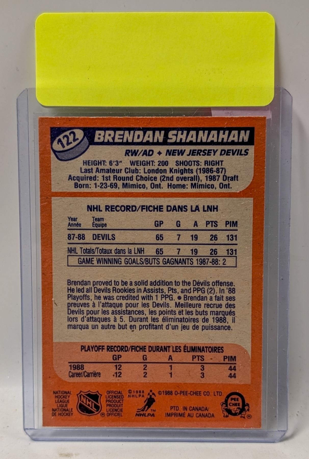 1988 OPC BRENDAN SHANAHAN ROOKIE CARD