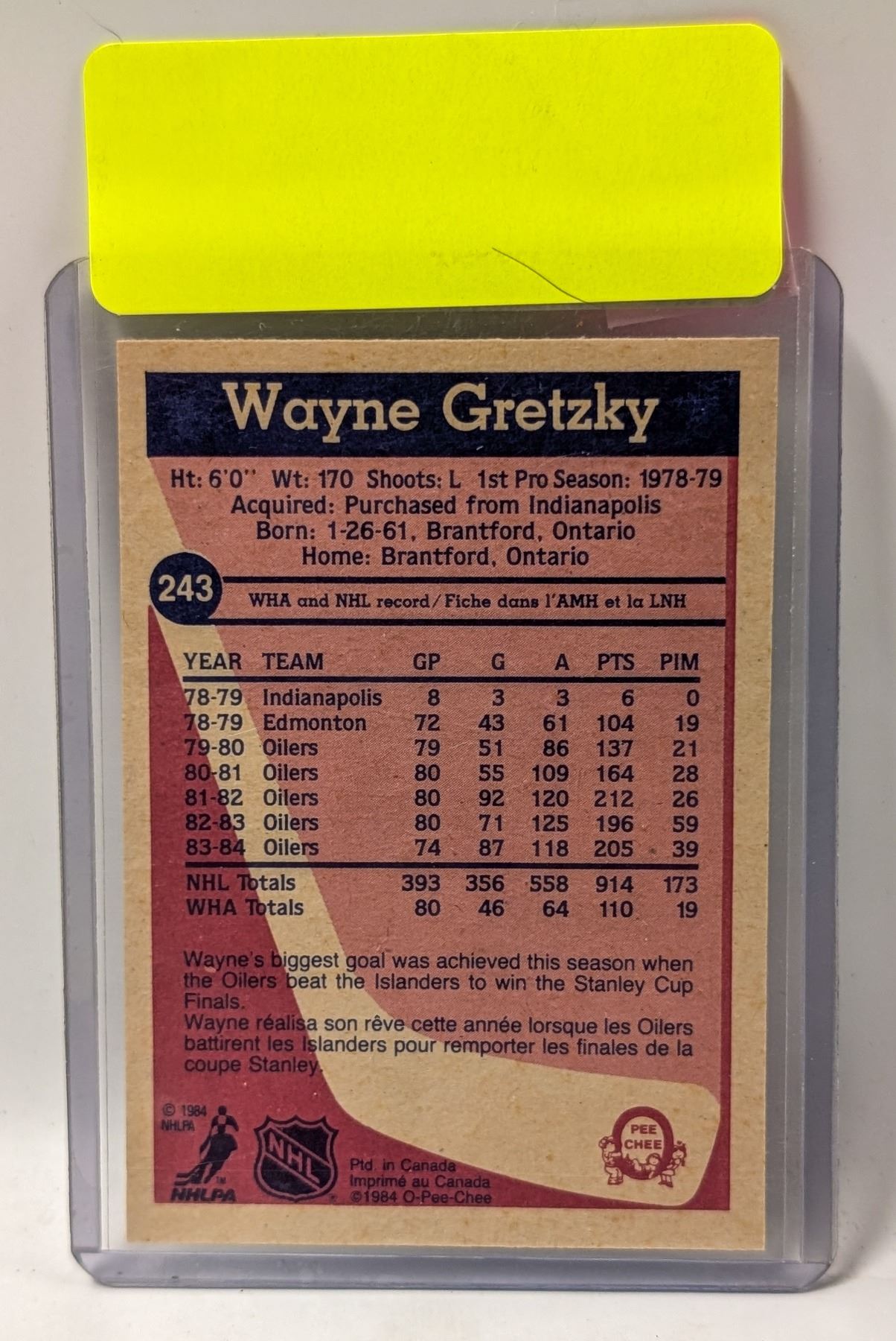1984 OPC WAYNE GRETZKY HOCKEY CARD EXC