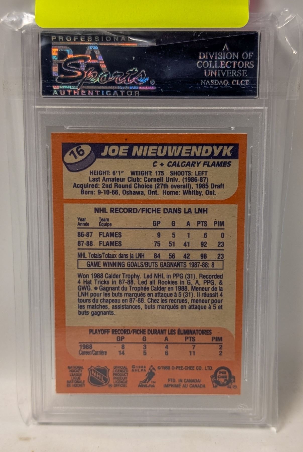 1988 JOE NIEUWENDYK ROOKIE PSA 8