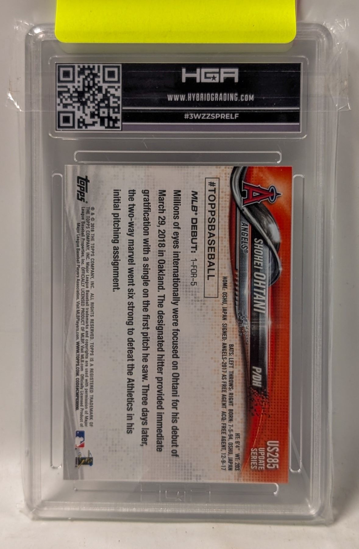 Lot 9183 2018 TOPPS SHOHEI OHTANI ROOKIE PSA 9
