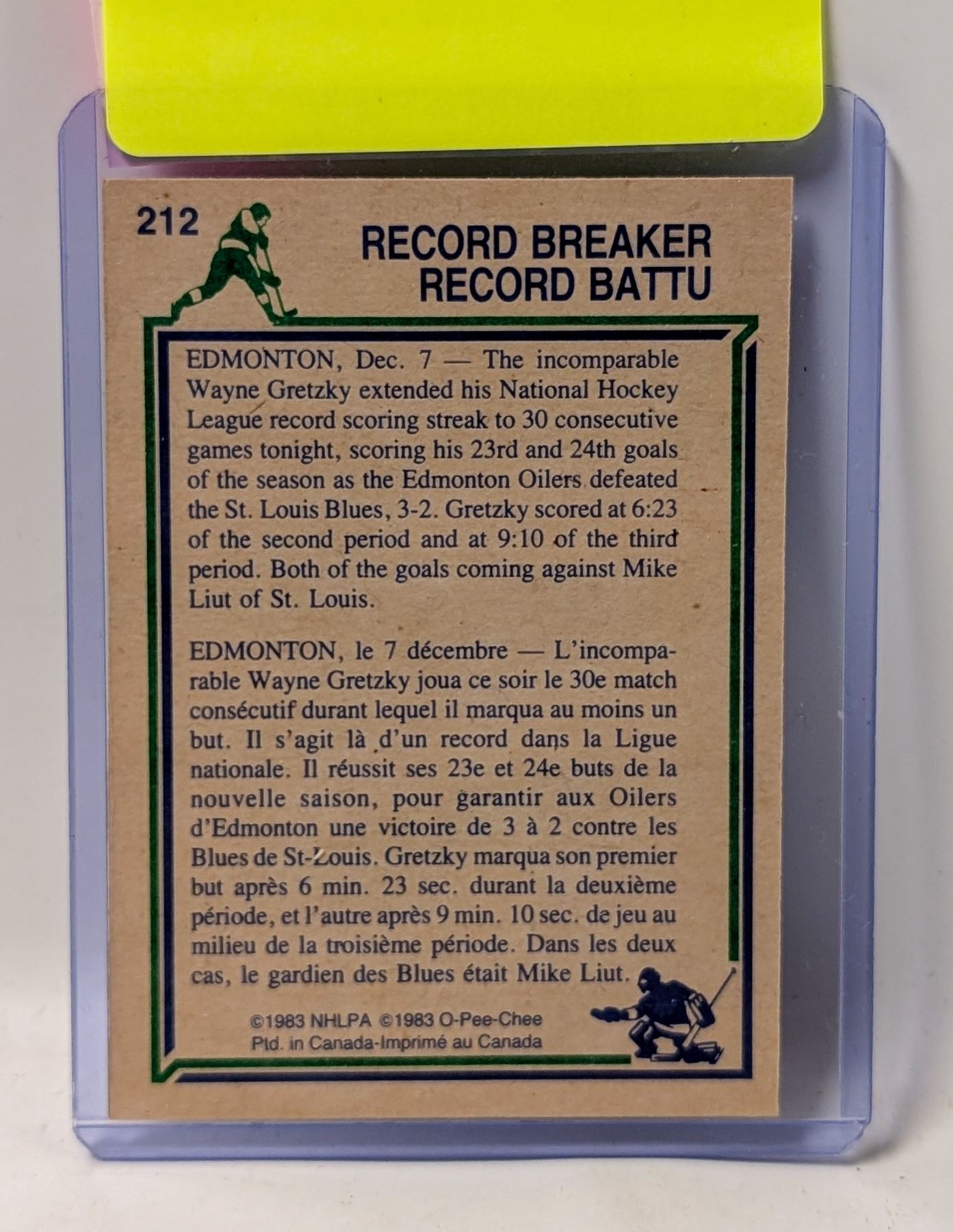 Lot 9190 1982 OPC WAYNE GRETZKY HOCKEY CARD 212
