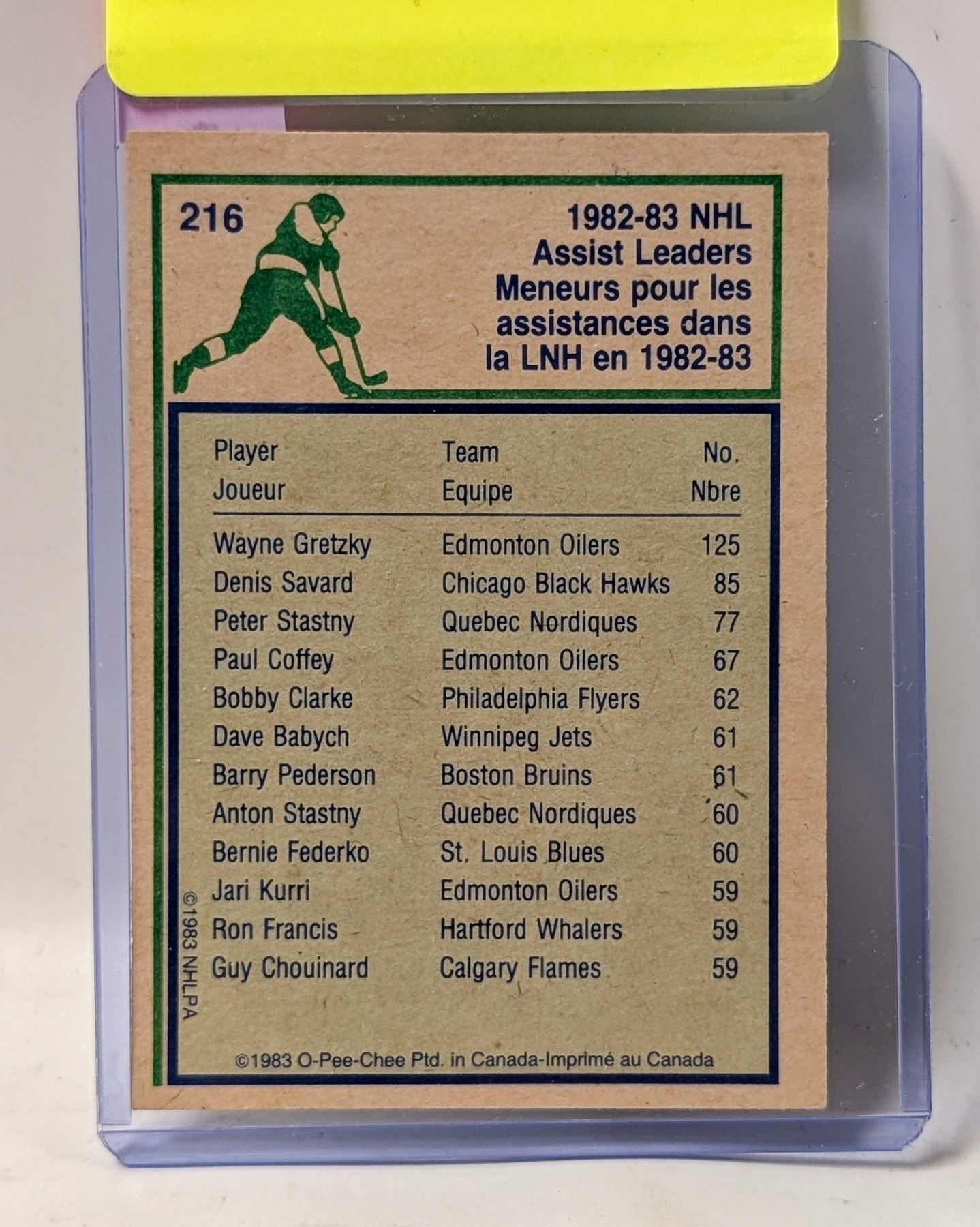 Lot 9203 1982 OPC WAYNE GRETZKY HOCKEY CARD 216