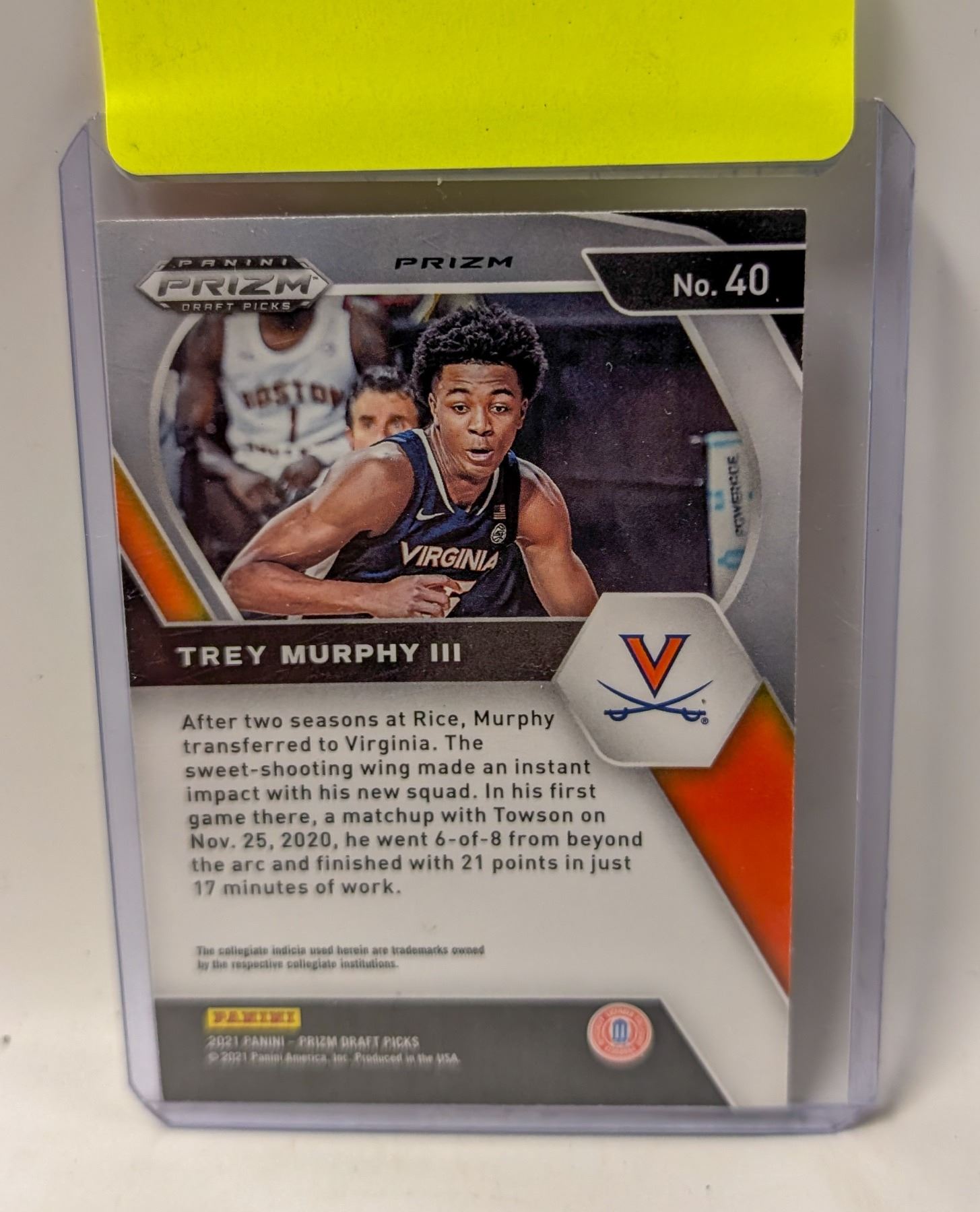 Lot 9212 2021 PANINI TREY MURPHY BASKETBALL CARD