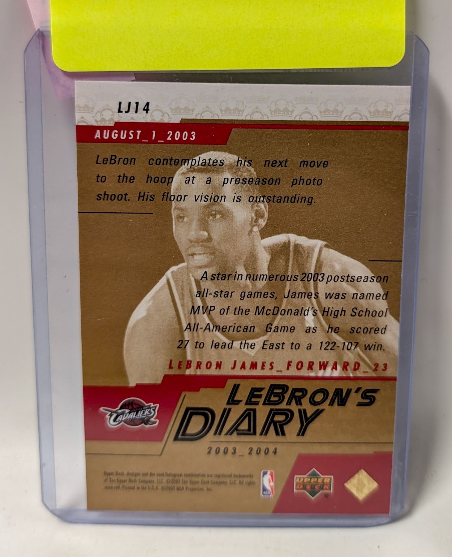 2004 UD LEBRON JAMES ROOKIE CARD
