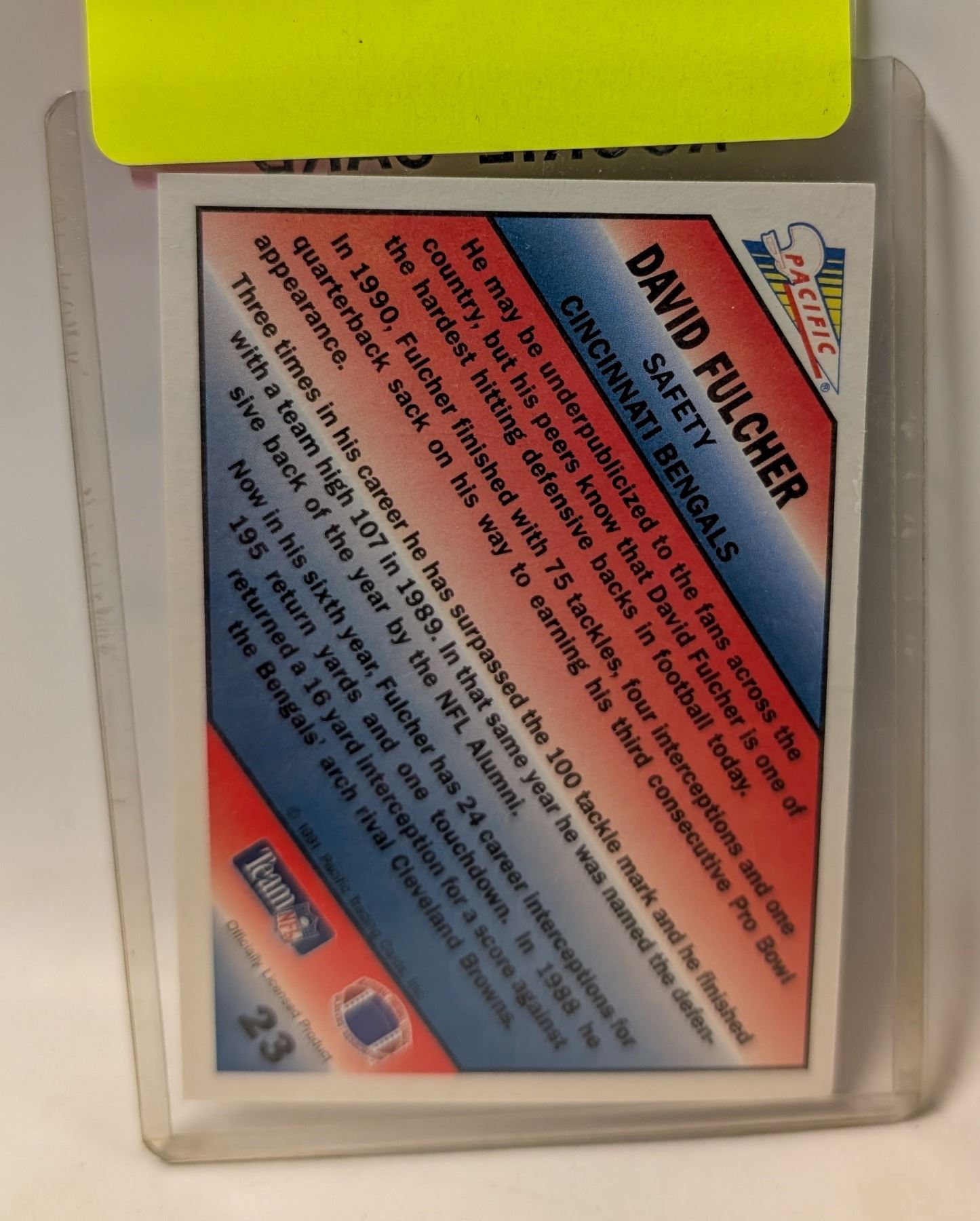 Lot 9218 1989 PACIFIC DAVID FULCHER ROOKIE CARD