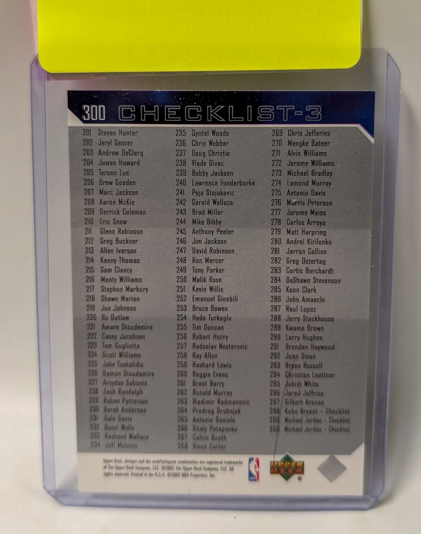 2003 UD MICHAEL JORDAN CHECKLIST CARD
