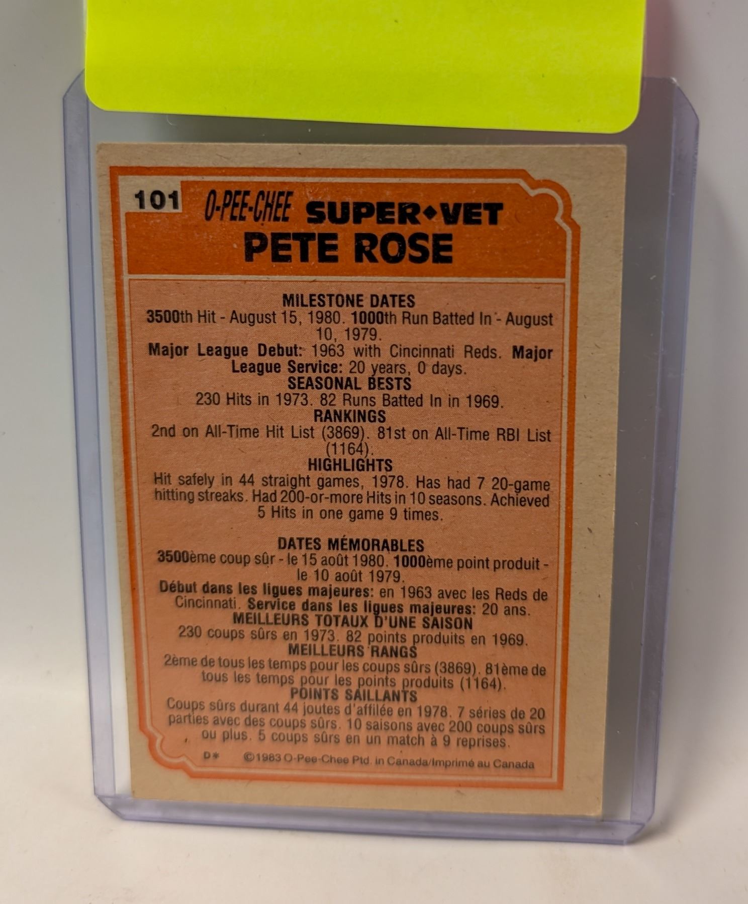Lot 9233 1982 OPC PETE ROSE HOF BASEBALL CARD