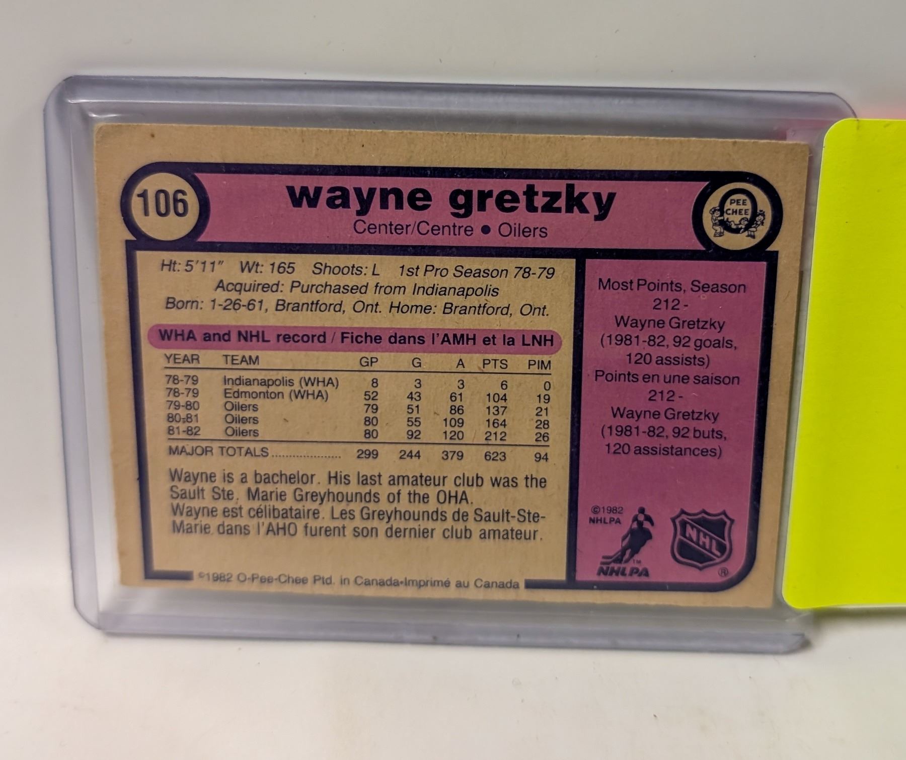 Lot 9247 1982 OPC WAYNE GRETZKY HOCKEY CARD