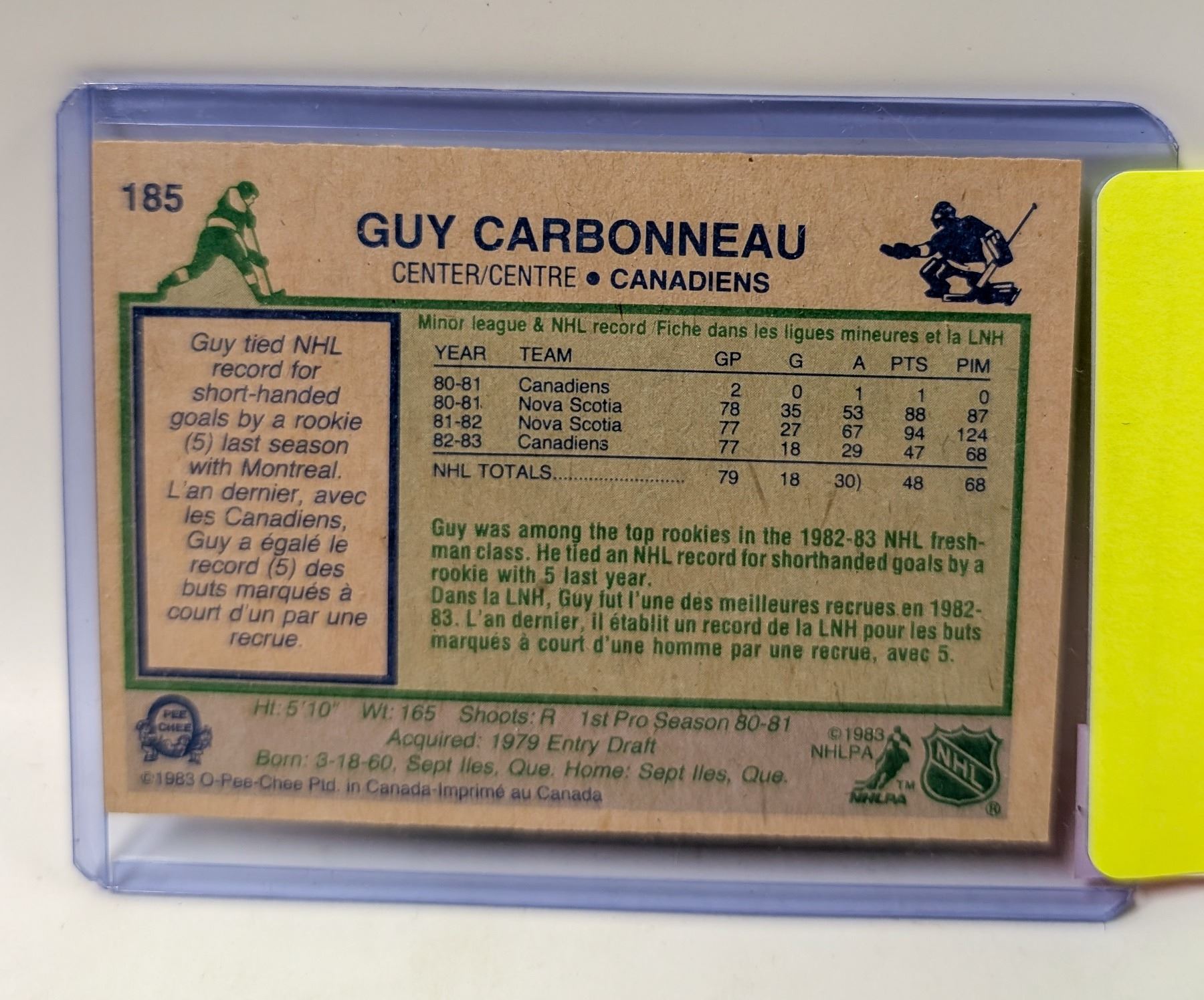 Lot 9255 1984 OPC GUY CARBONNEAU HOCKEY CARD