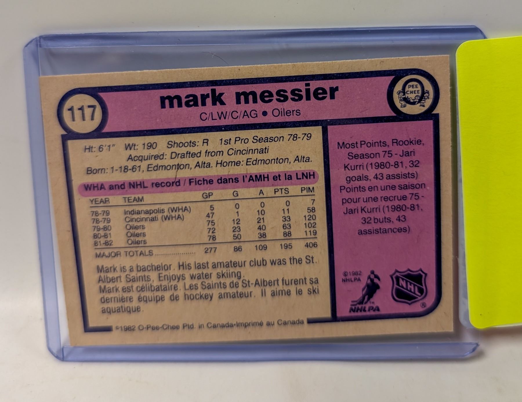 1982 OPC MARK MESSIER HOCKEY CARD