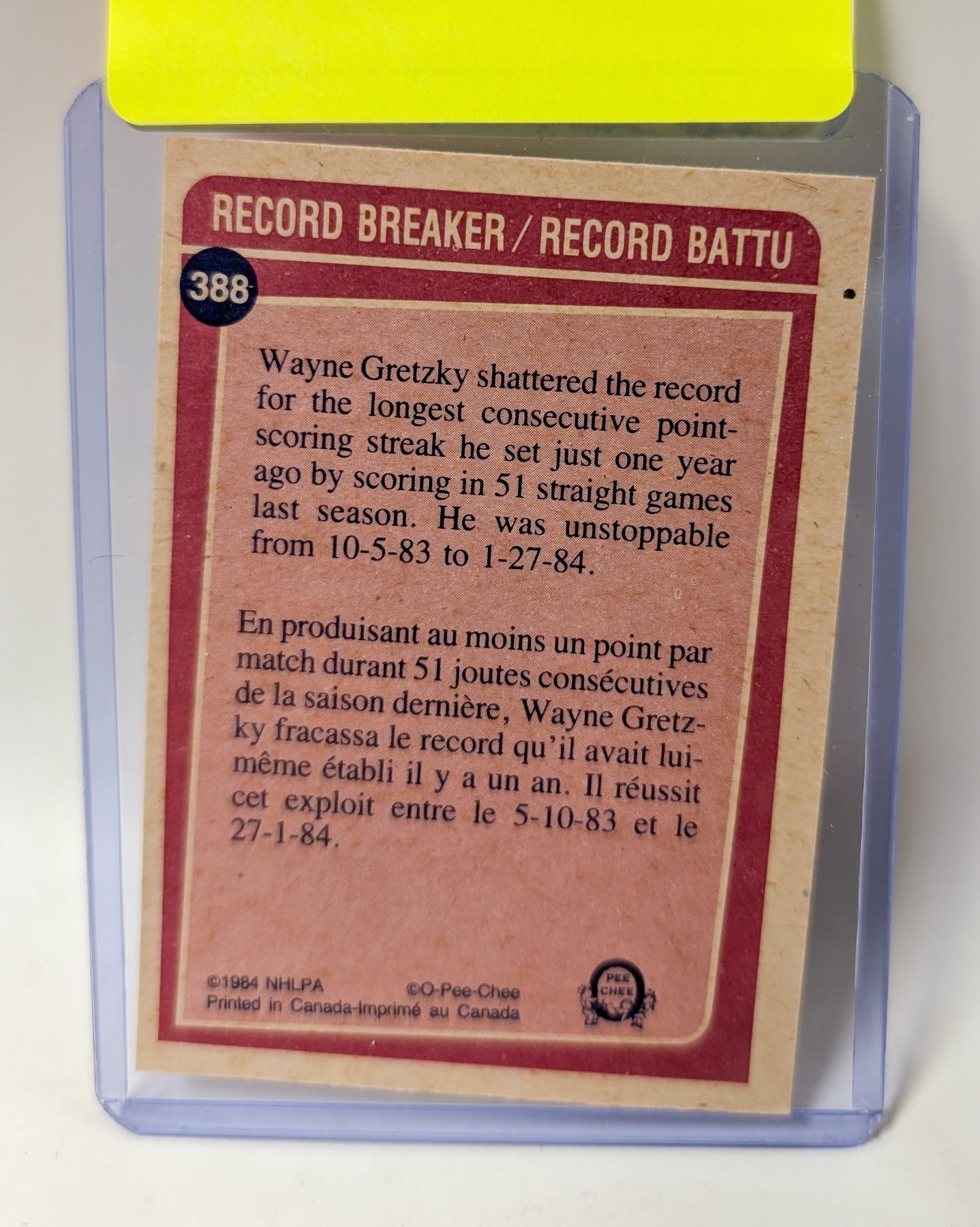 Lot 9267 1984 OPC WAYNE GRETZKY HOCKEY CARD
