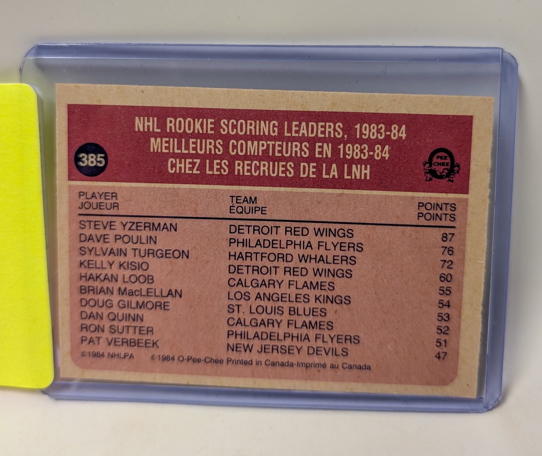 Lot 9269 1984 STEVE YZERMAN HOCKEY CARD