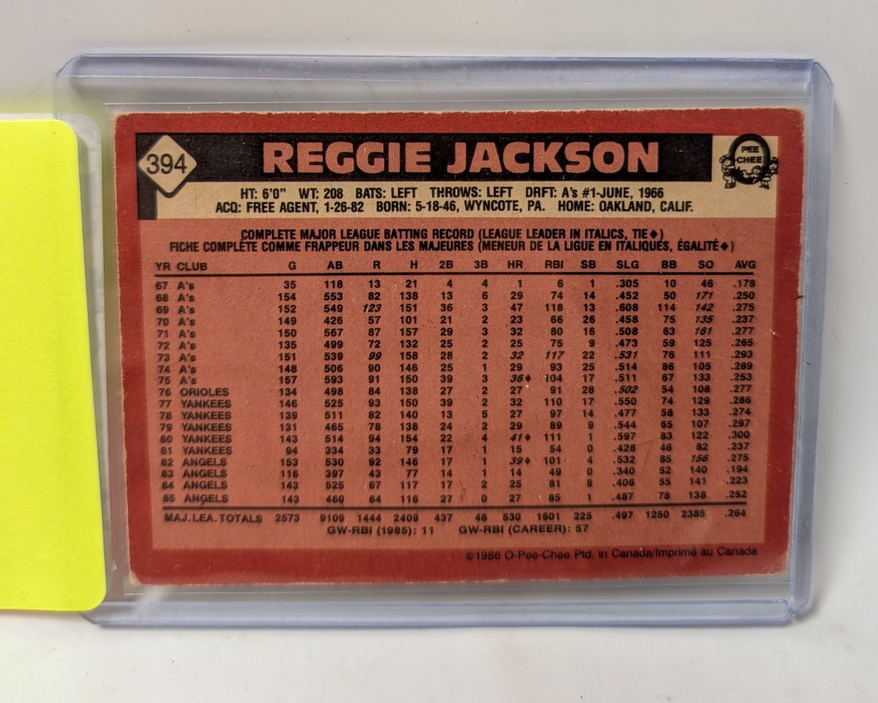 Lot 9285 1986 OPC REGGIE JACKSON BASEBALL CARD