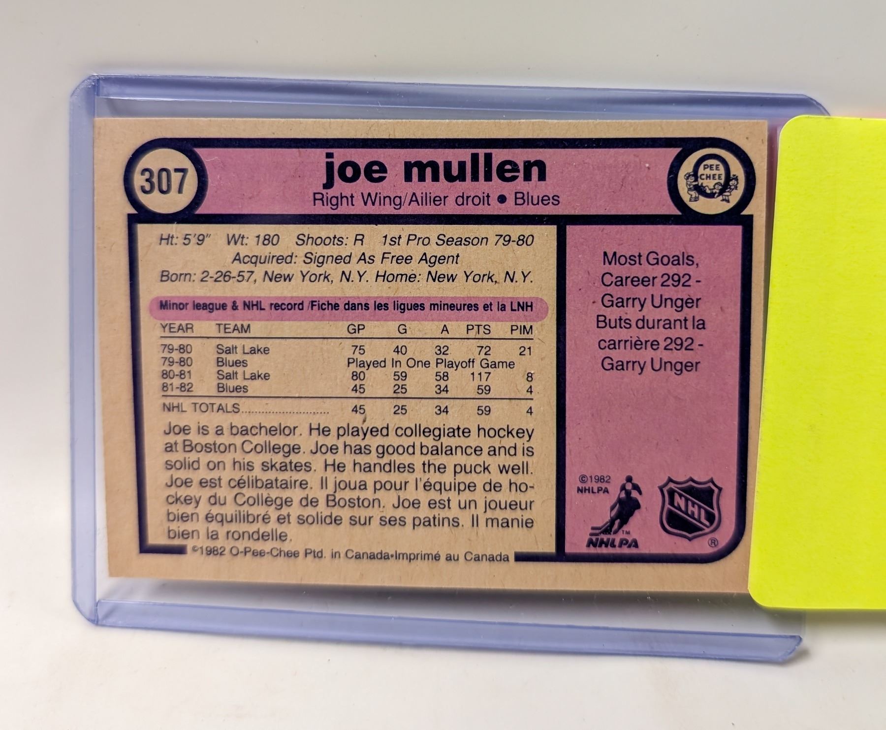 1982 OPC JOE MULLEN ROOKIE CARD