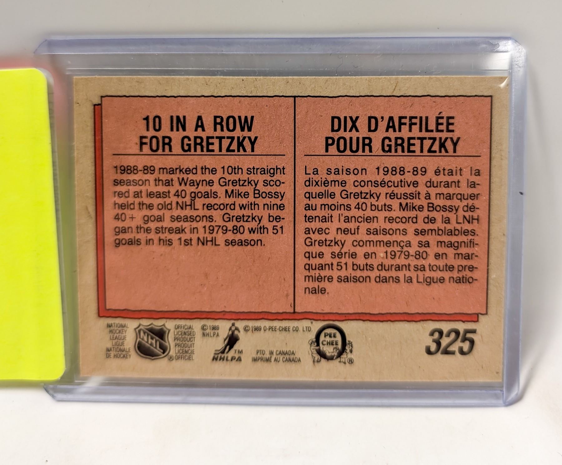 Lot 9307 1989 WAYNE GRETZKY HOCKEY CARD 325